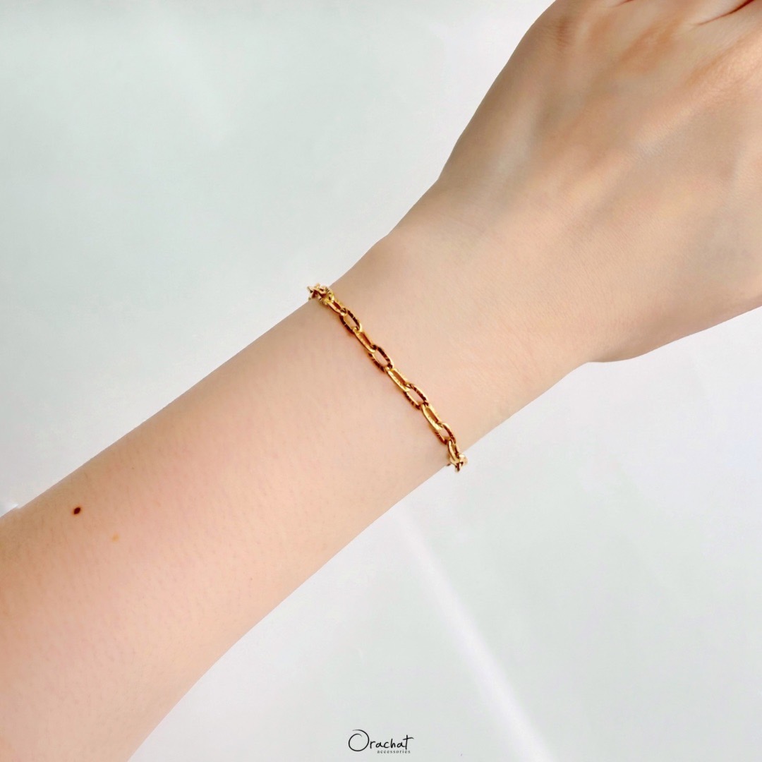 ใครชอบความคลาสสิค เรียบๆ ง่ายๆ เบาๆ แนวเท่ๆ ต้องมีรุ่นนี้ สร้อยข้อมือโซ่เรียบๆแบบไม่มีจี้ แต่มีดีเทลคือลายที่ลูกโซ่ช่วยเพิ่มความไบร์ท เล่นแสงดีมากก