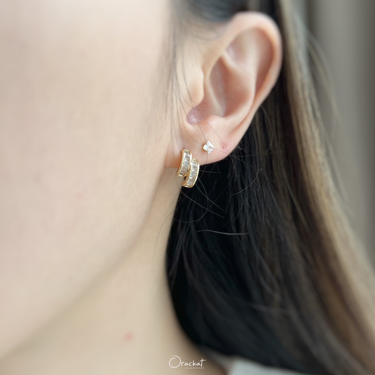 เรียบง่ายและดูดีกับต่างหูแบบติดหูทรง 2 ชั้นติดกัน ให้ลุคเรียบหรู คลาสสิค ใส่ได้ทุกโอกาส