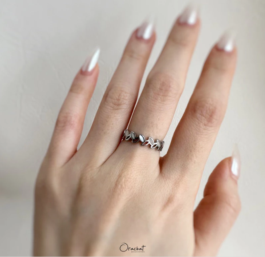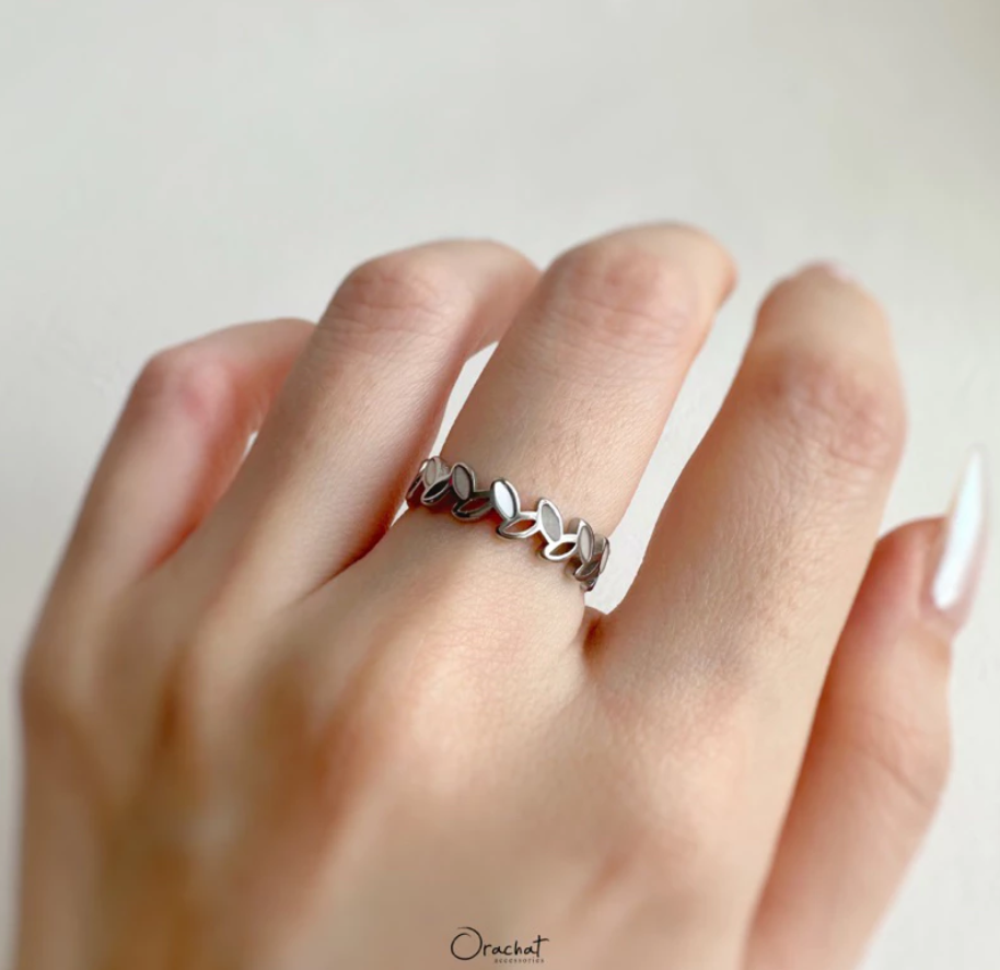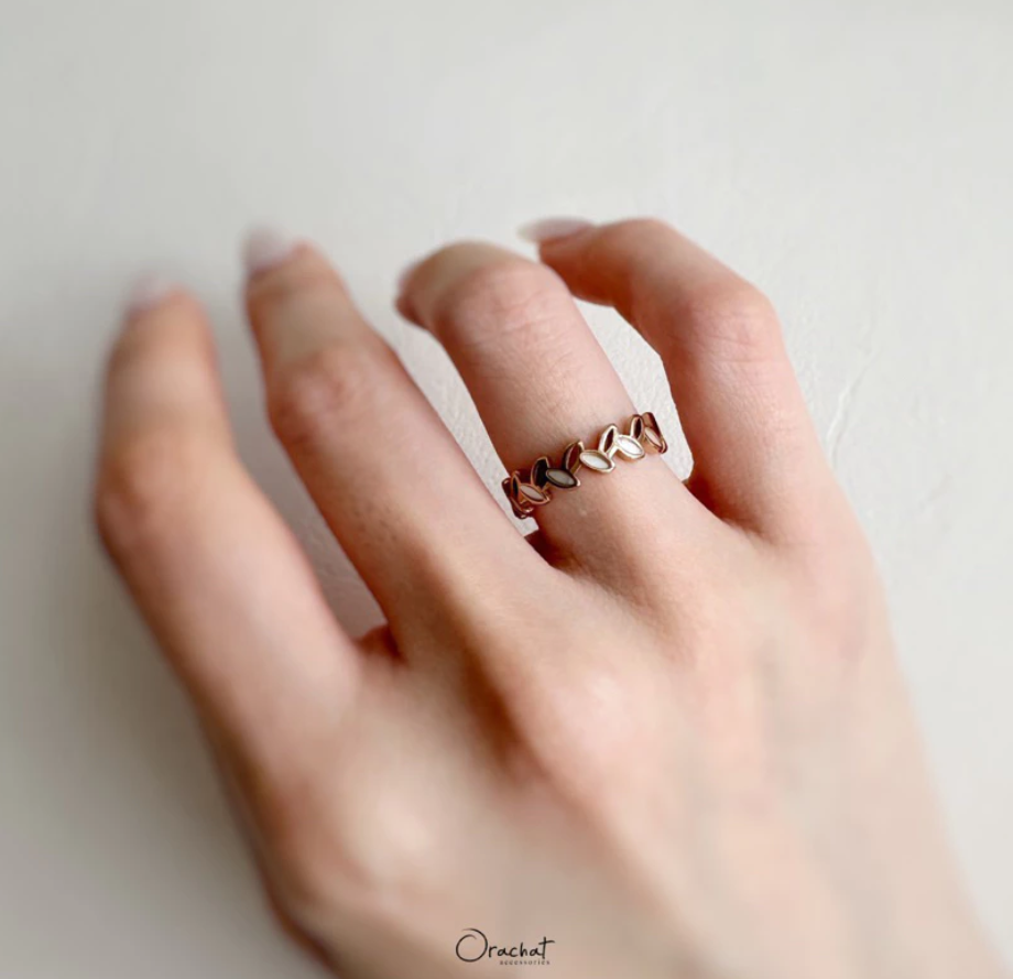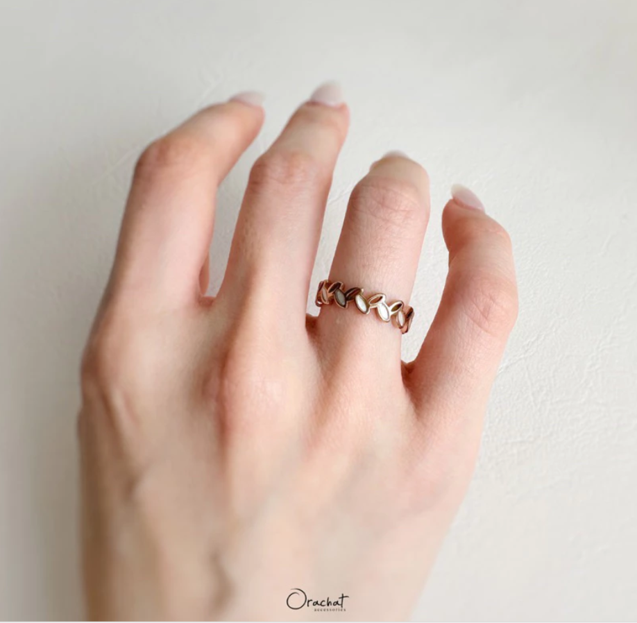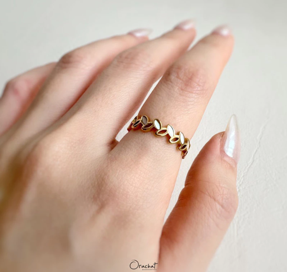 แหวนใบมะกอกรอบวงรุ่นใหม่ มีดีเทลที่ใบแต่งด้วยเปลือกหอยมุก สวยหรูดูแพงมาก ใบมะกอกคือเครื่องประดับความหมายดีที่สาวๆควรเก็บ!