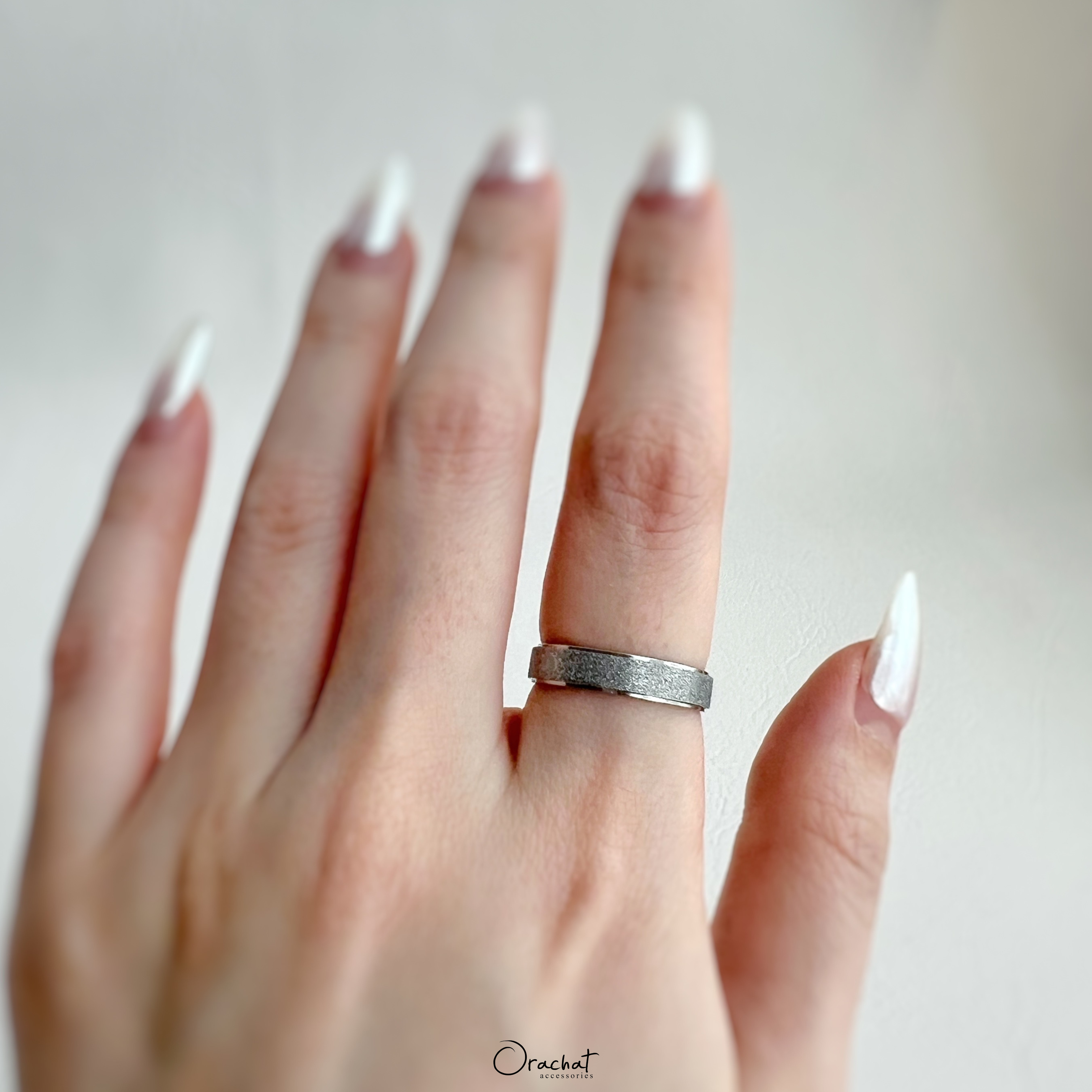 เรียบง่ายและดูดีต้องแหวนลายพ่นทรายขอบเงา รุ่นนี้ใส่ได้ทั้งผู้หญิงและผู้ชายเลยนะคะ