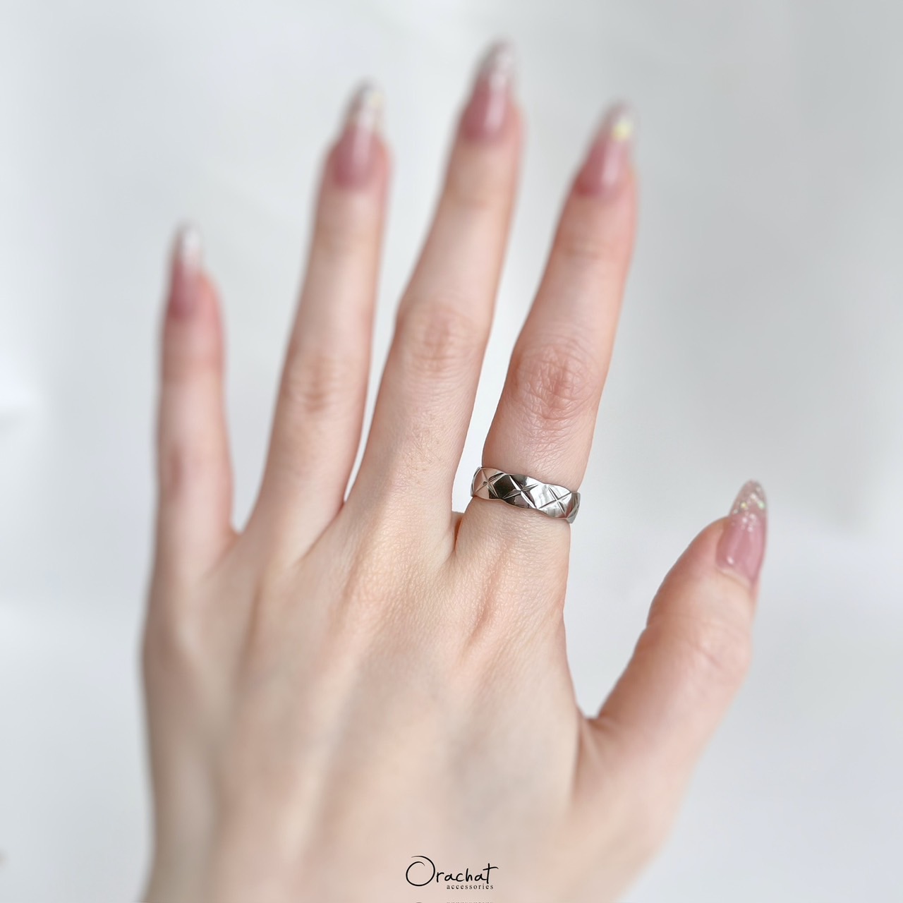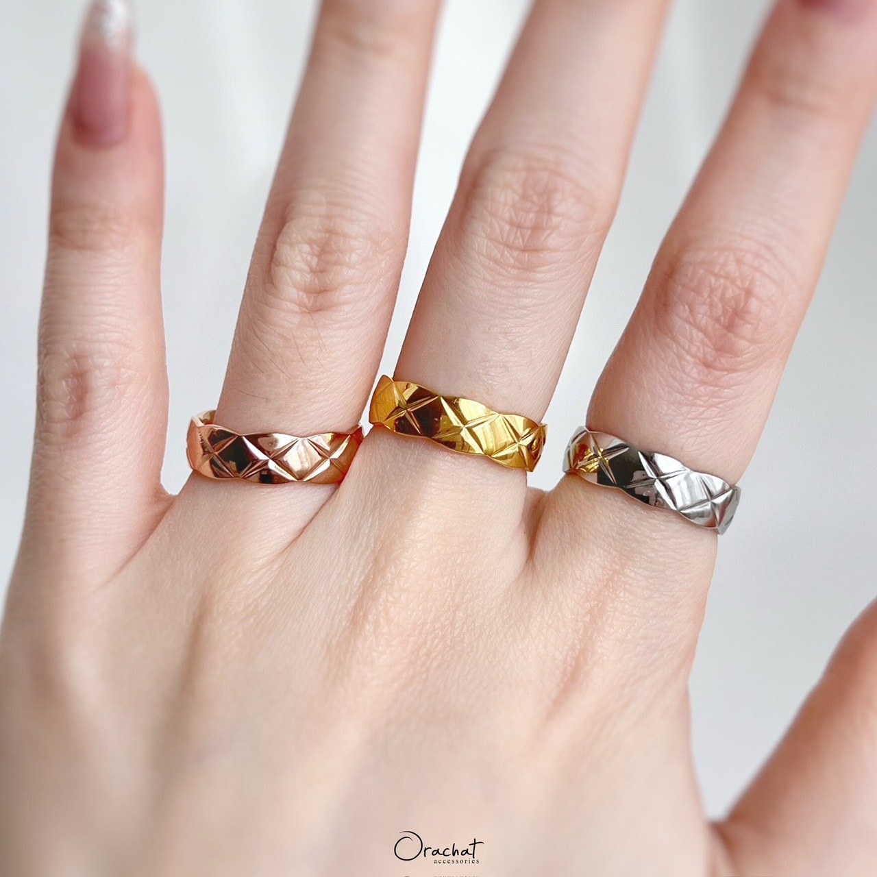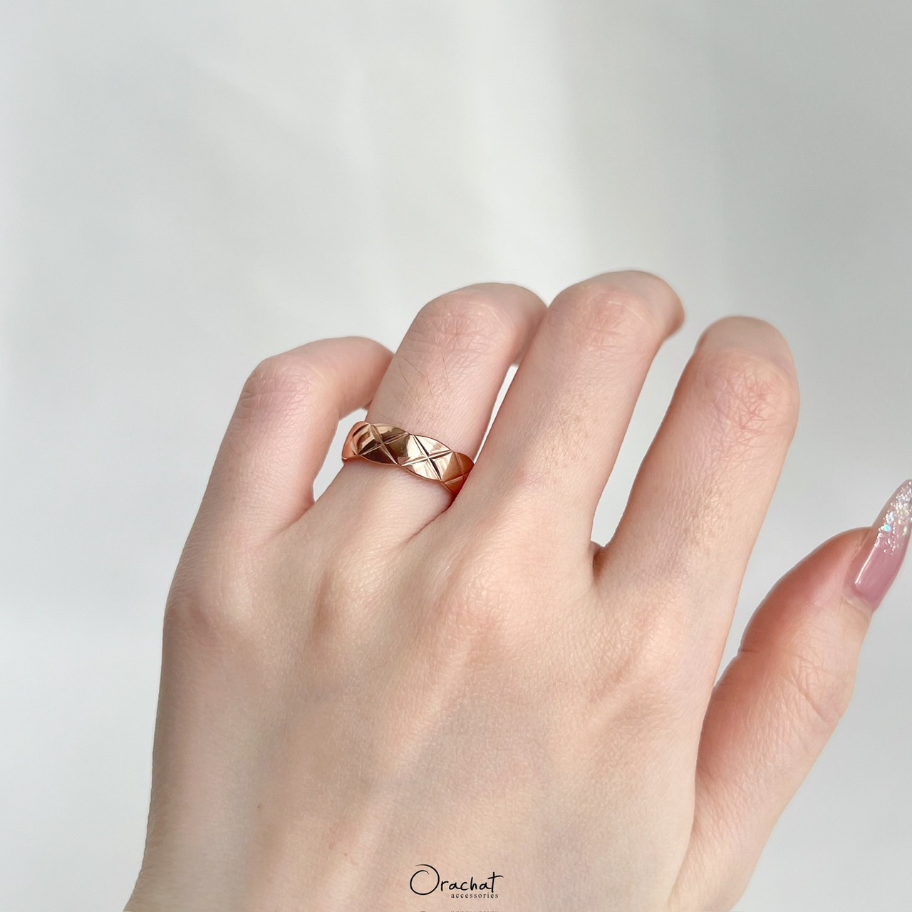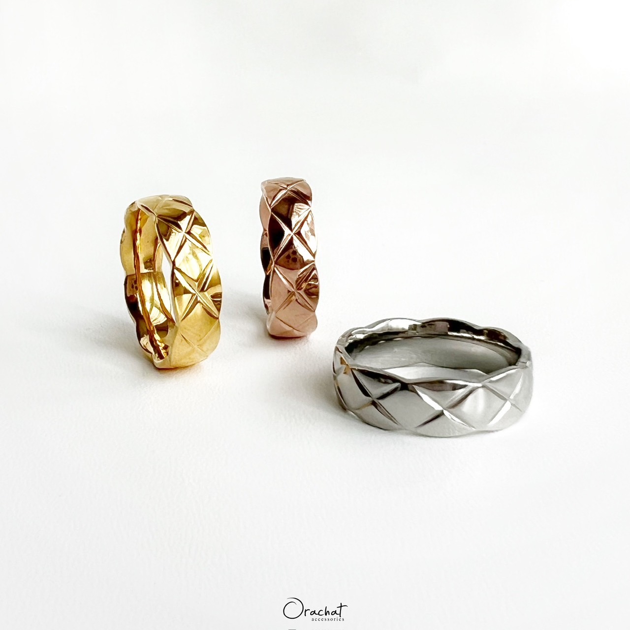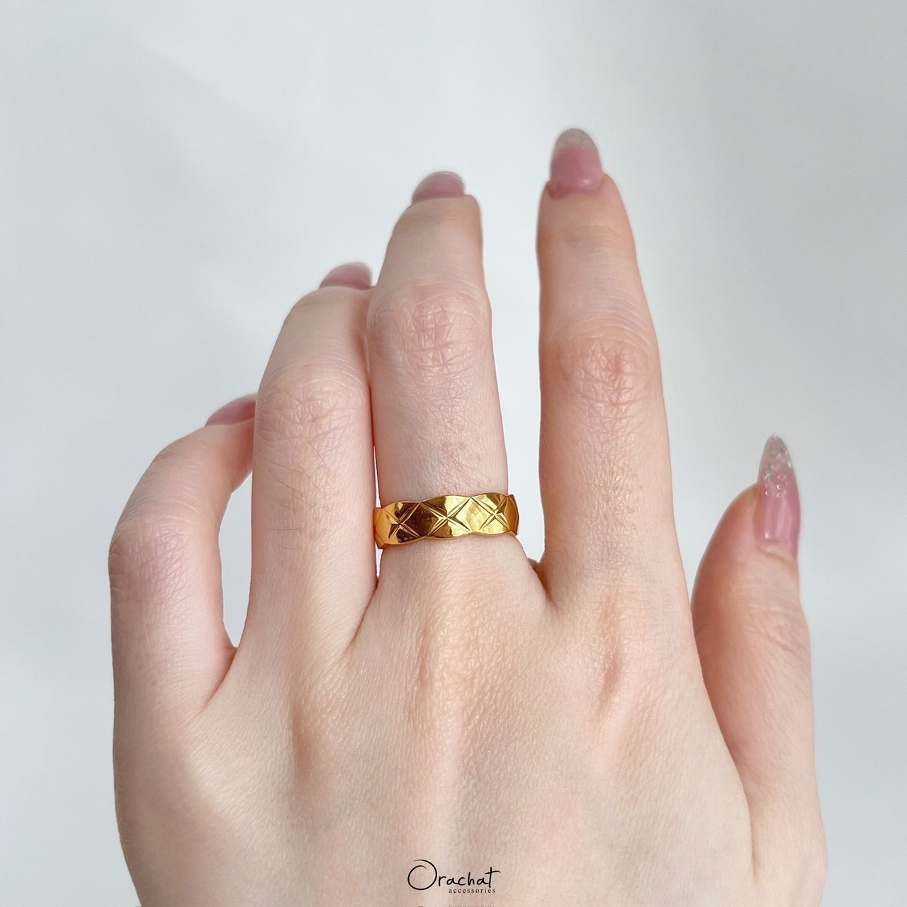 เรียบ หรู ดูดี และมีสไตล์ แหวนเกลี้ยงตารางบากฟีลเหมือนลายของกระเป๋าที่เย็บคาดกัน สวยมีเทสสุดๆ ใส่สวยทุกนิ้ว