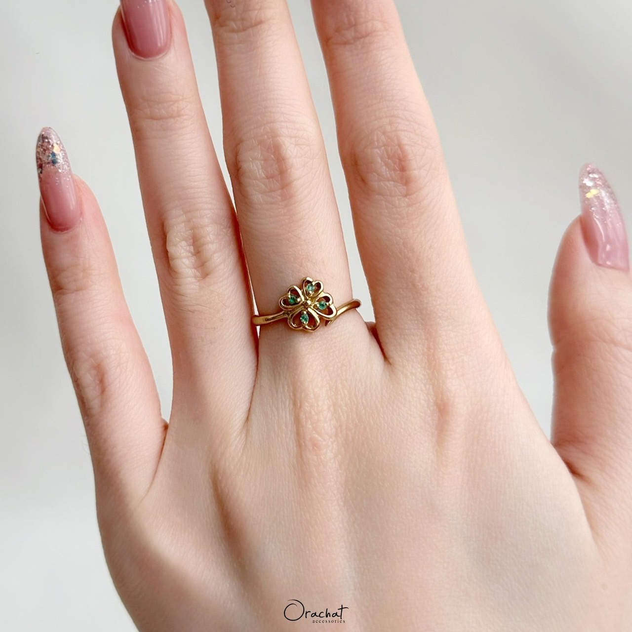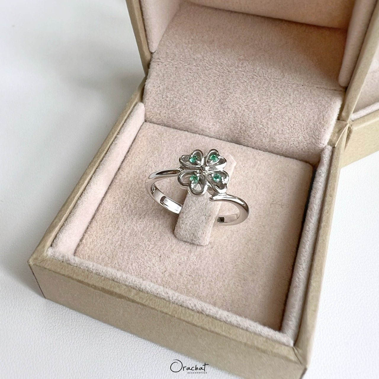 1) ตัวแหวนคือลาย "ใบโควเวอร์ 4 แฉก" เป็นสัญลักษณ์แห่งความโชคดี ใครพกติดตัวไว้จะพบเจอแต่สิ่งดีๆ