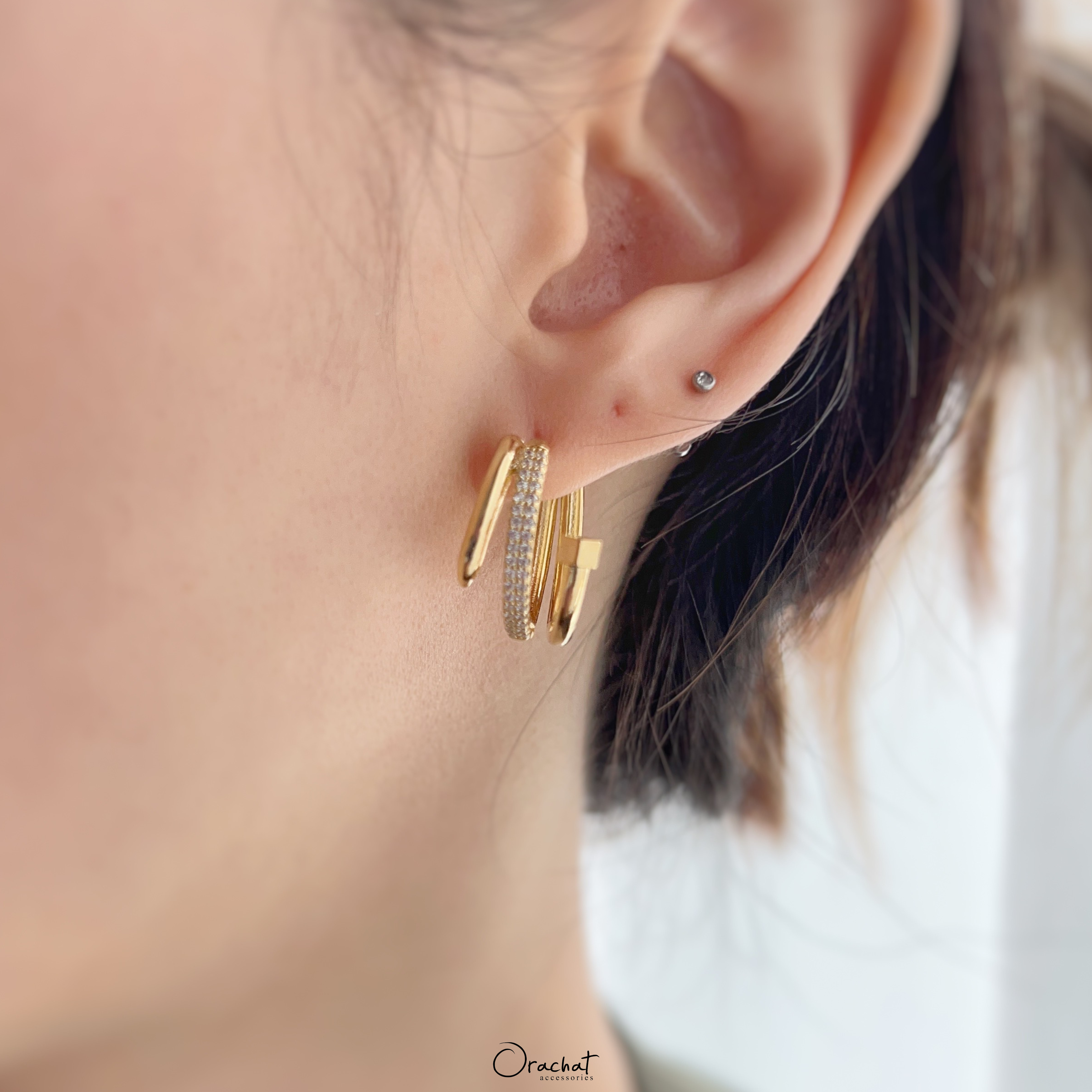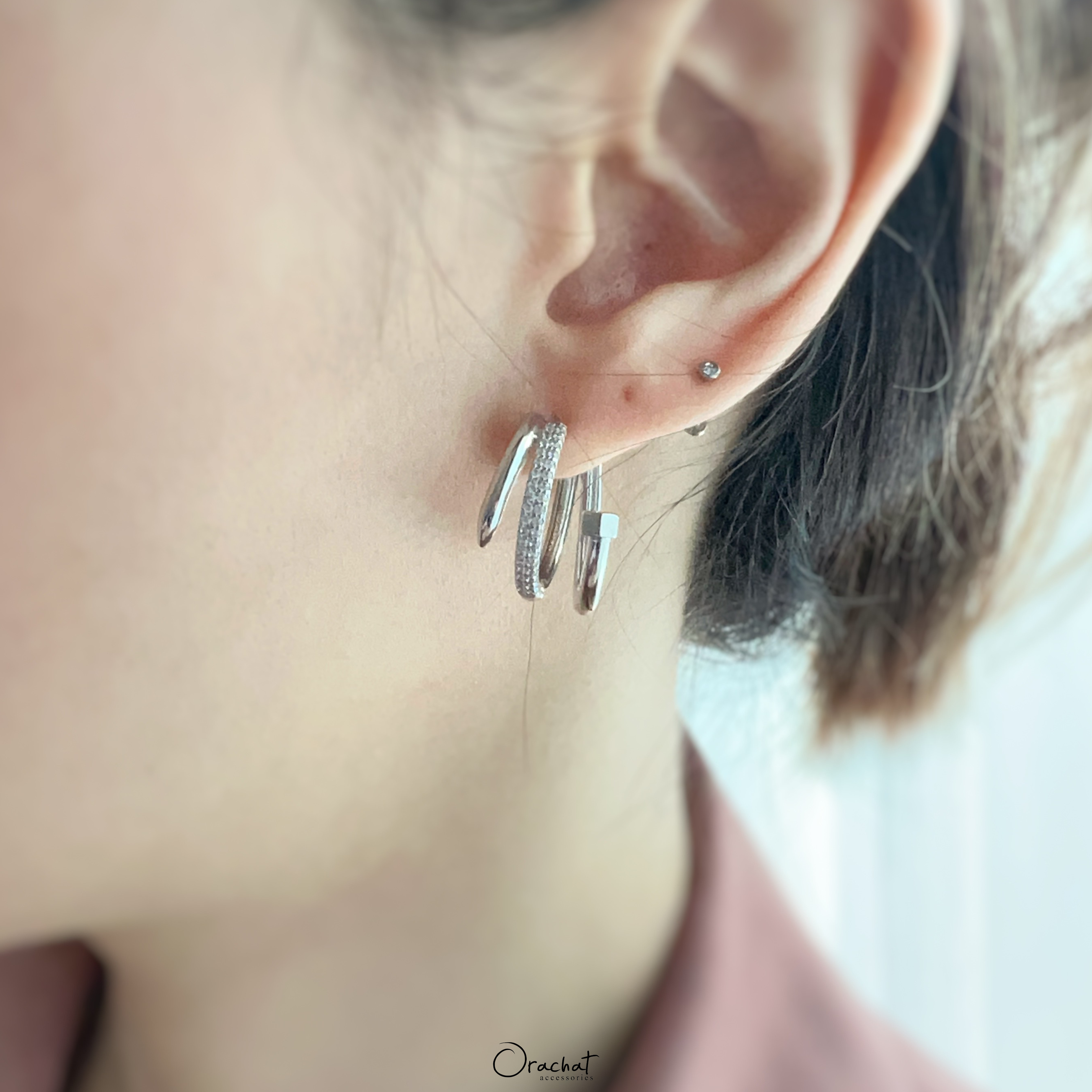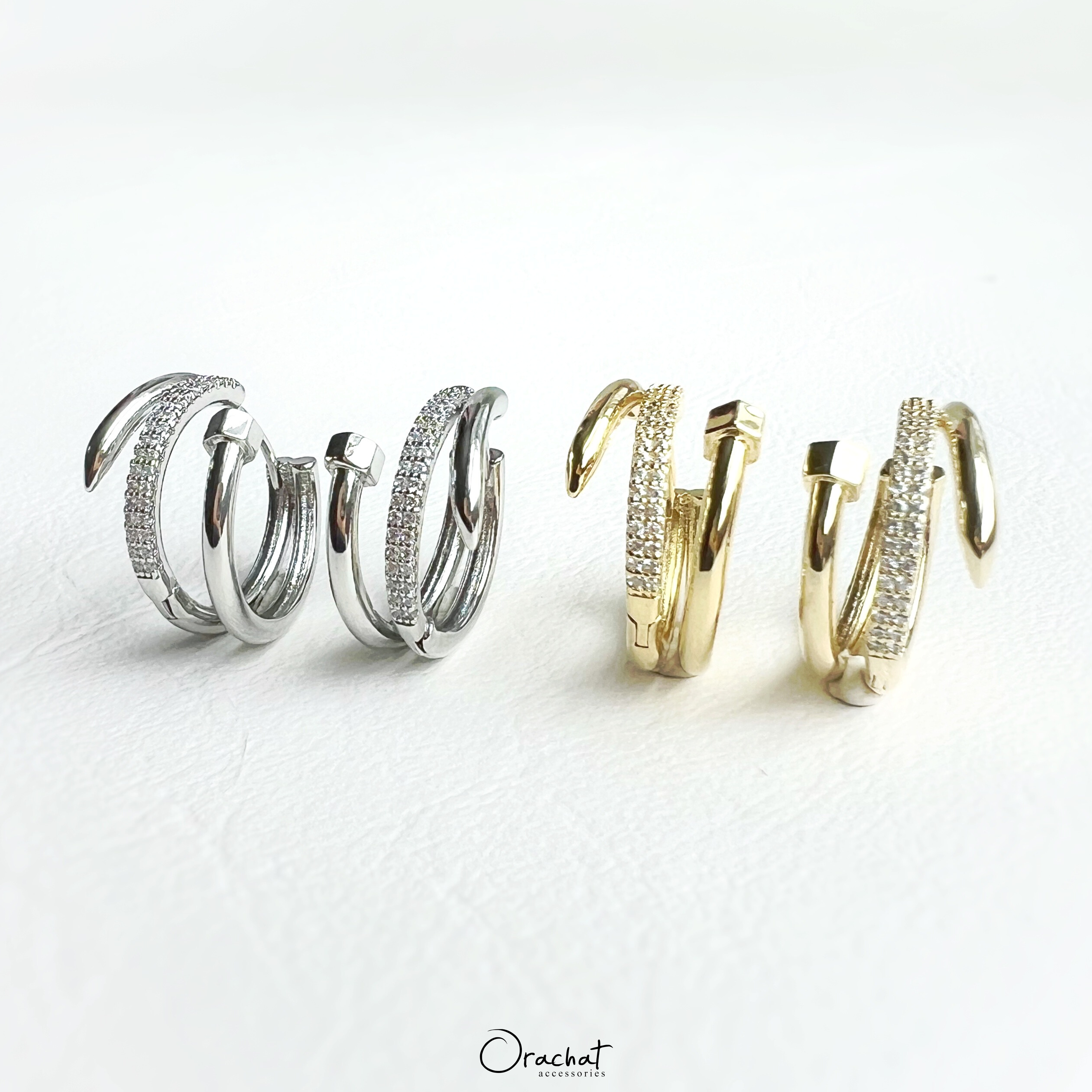 เห็นเหมือนใหญ่แต่ใส่แล้วสวยมาก! จะปล่อยผมหรือมัดผมก็เอาอยู่กับผมทุกทรง บอกเลยว่าต้องมี! ต่างหูห่วงตะปูที่ทุกคนถามหา ฟีลเหมือนใส่ตะปูคล้องหู 3 ทบ คือเก๋ คือดีย์ คือดูแพง! ตกแต่งด้วยเพชร CZ เกรดพรีเมียม เพิ่มความวิ้ง สวยเล่นไฟ งาน jewelry ขึ้นห้างขายหลักพัน