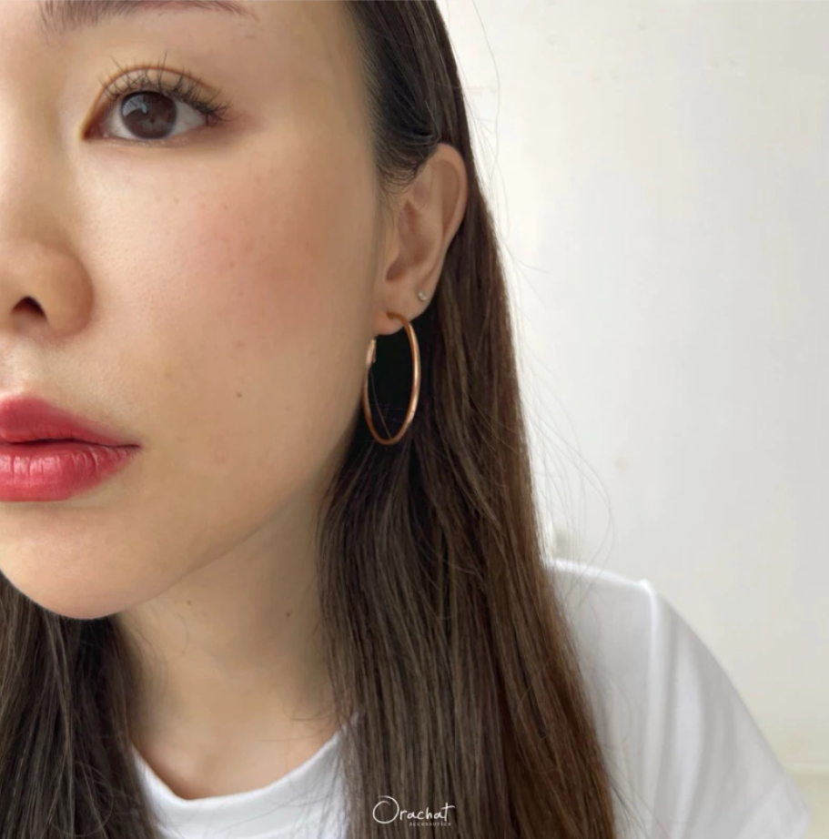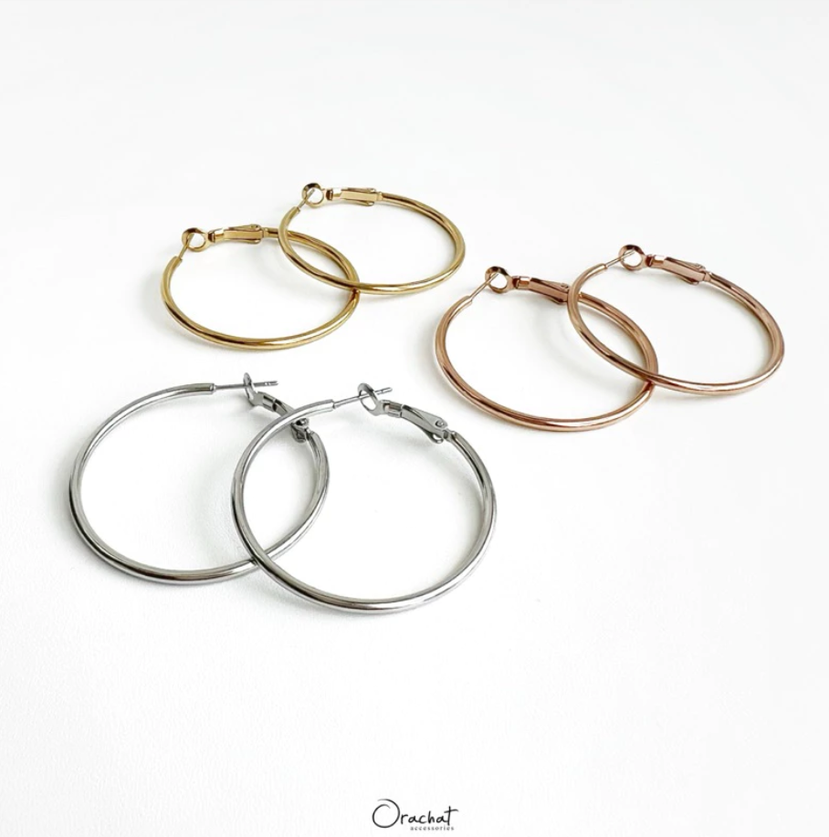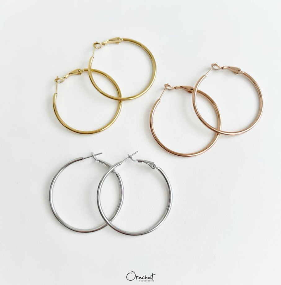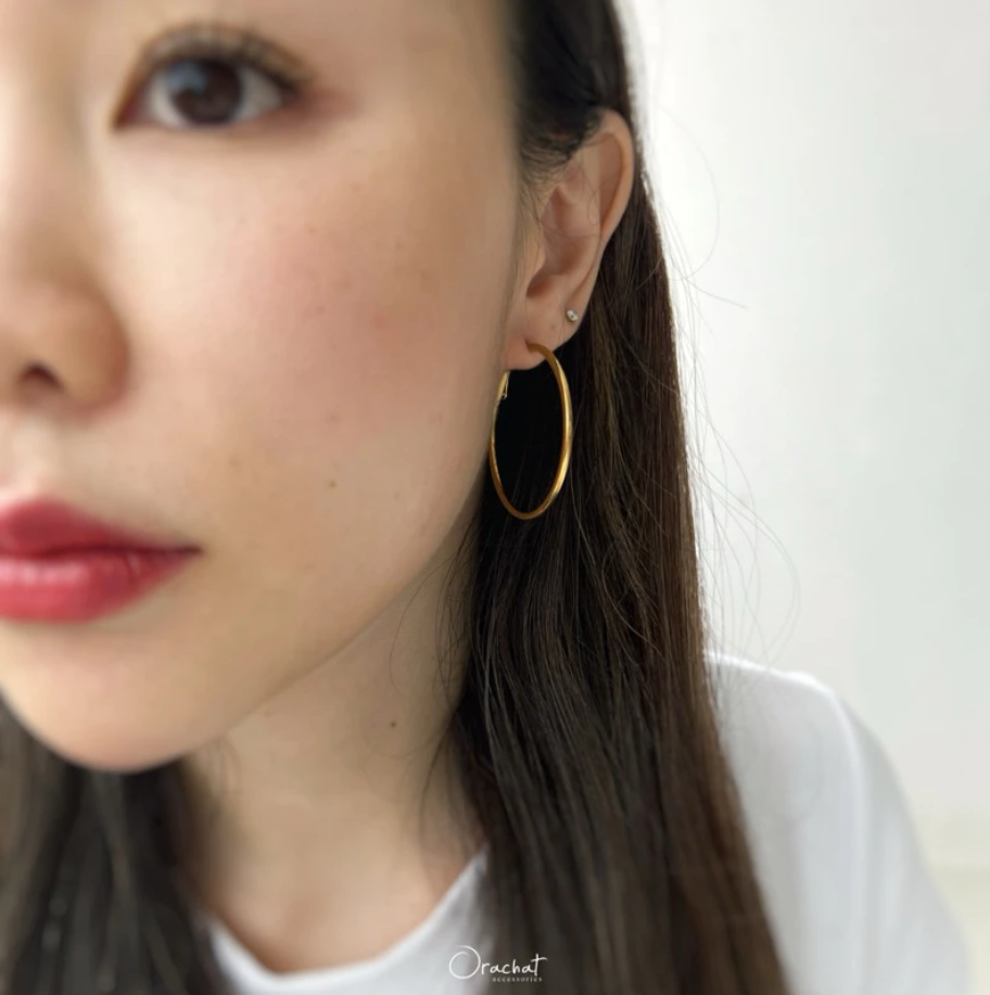 ต่างหูห่วงเรียบๆสุดคลาสสิค ขนาดกำลังดีใส่แล้วช่วยพรางให้หน้าดูเรียว ไอเท็มเบสิคที่ไม่ควรมองข้าม ต้องมีติดไว้นะคะ