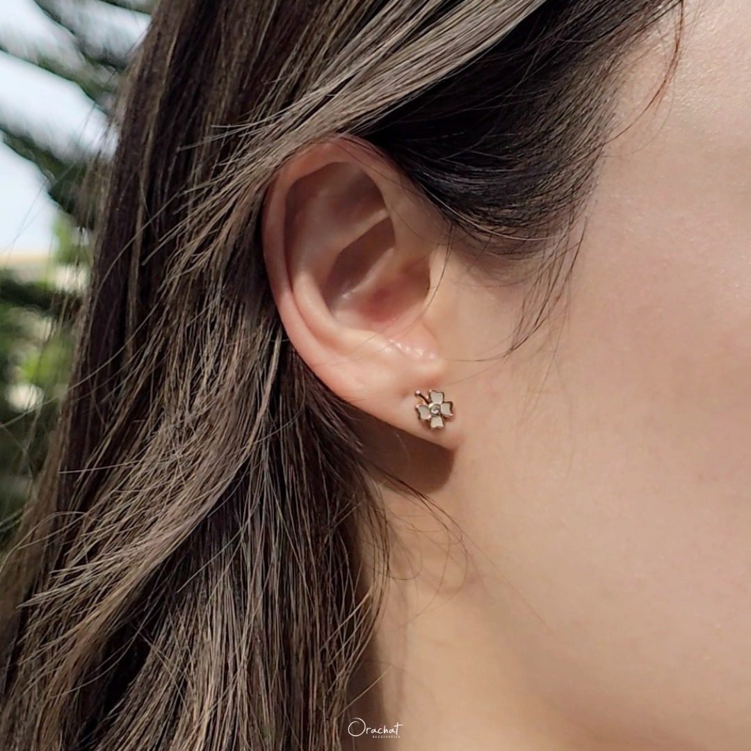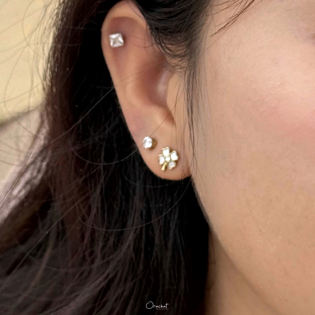 Fortune Clover 14k earrings. ต่างหูใบโควเวอร์จิ๋วสุดคิ้วท์ตกแต่งด้วยเปลือกหอยมุก ใส่ง่าย ใส่ได้ทุกโอกาสน่ารักและความหมายดี ใส่เองก็น่ารัก ซื้อเป็นของขวัญคนรับก็ประทับใจ 🍀 มีความเชื่อกันว่าใบโควเวอร์ 4 แฉก คือสัญลักษณ์แห่งความโชคดี ใครพกติดตัวไว้จะพบเจอแต่ 💪🏻 ตัวเรือนสแตนเลสสี 14k ไม่ลอกไม่ดำ สวย ทน เงา โดนน้ำ โดนน้ำหอม ใส่ล้างจาน ใช้เจลแอลกอฮอลล์ได้สบายๆเลยค่ะ Size : 7x9 mm Color : Silver, Gold, Rose Gold Price : ฿490.00 —————————————————————