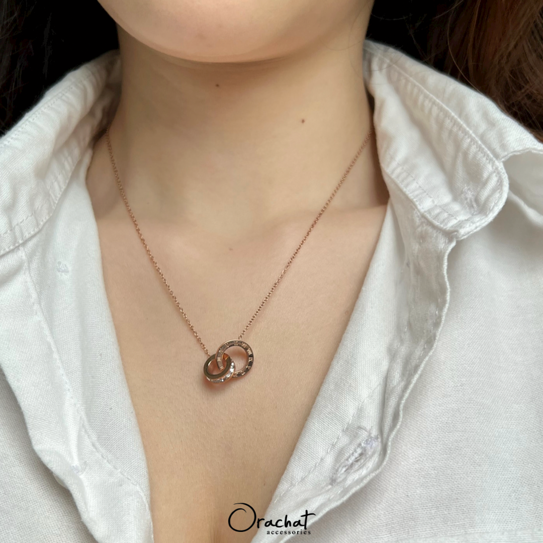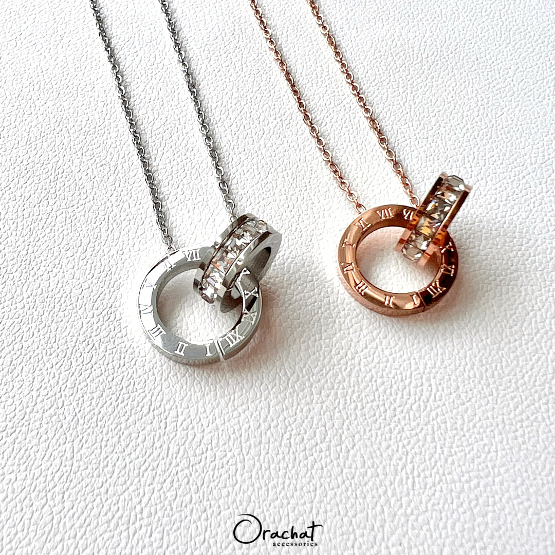 สร้อยคอจี้คล้องสุดเก๋ ฝั่งนึงตกแต่งด้วยเพชร CZ รอบวง อีกฝั่งเป็นเลเซอร์ตัวเลขโรมัน สวยหรูดูแพง ตัวเรือนชุบ 14k (สแตนเลส) ไม่ลอกไม่ดำ สวย ทน เงา โดนน้ำ โดนน้ำหอม ใส่ล้างจาน ใช้เจลแอลกอฮอลล์ได้สบายๆเลยค่ะ