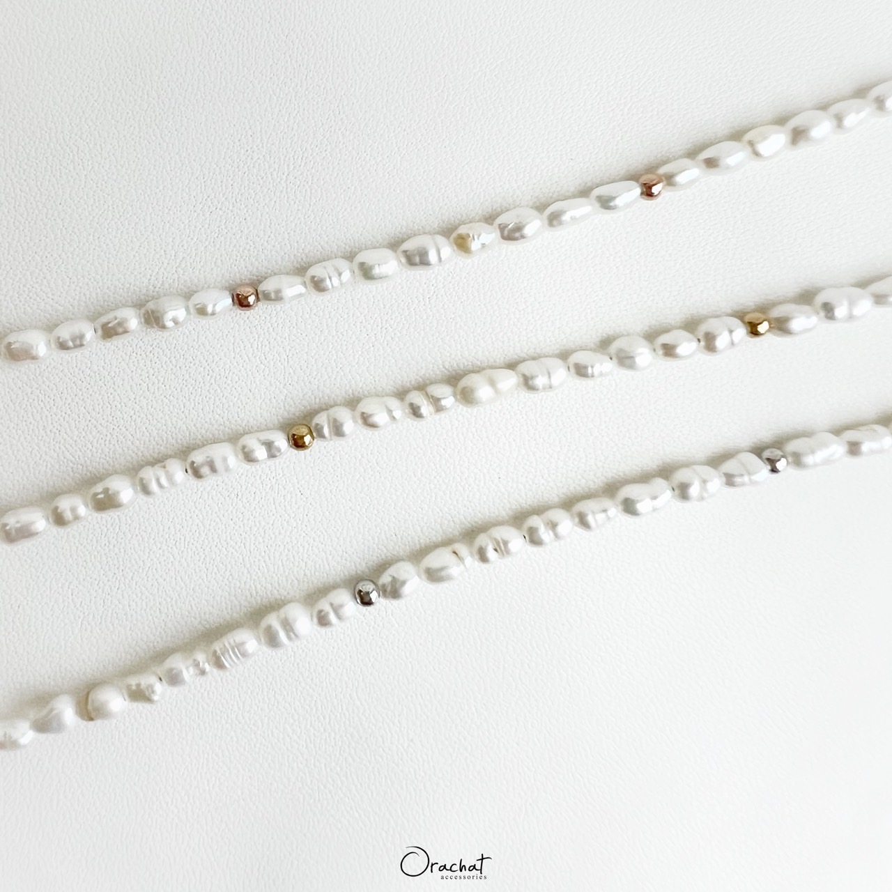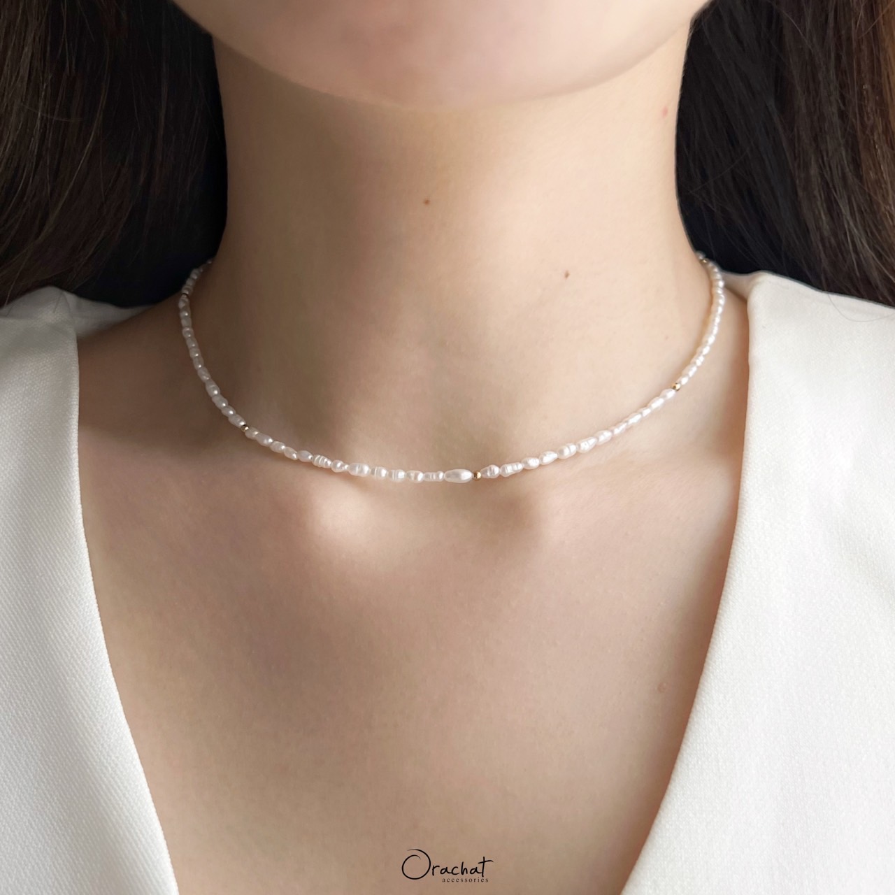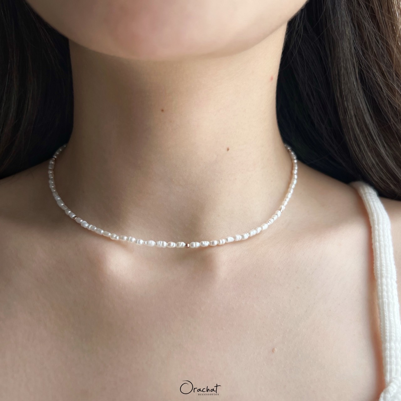 มาเติมความหวานด้วยสร้อยคอมุกแท้ธรรมชาติ สวยละมุน ช่วยปรับลุคงานแขนให้ดูมีชีวิตชีวา รุ่นนี้จะเป็นสร้อยคอทรงสั้นแบบติดคอนะคะ หาสร้อยคอที่มีจี้แบบอื่นๆมาแมชด้วยกันคือน่ารักมากกก เสน่ห์อีกอย่างนึงของงานมุกแท้คือแต่ละเม็ดจะหน้าตาไม่เหมือนกันเลยเพราะเกิดจากธรรมชาติ ไม่ผ่านการปรุงแต่ง