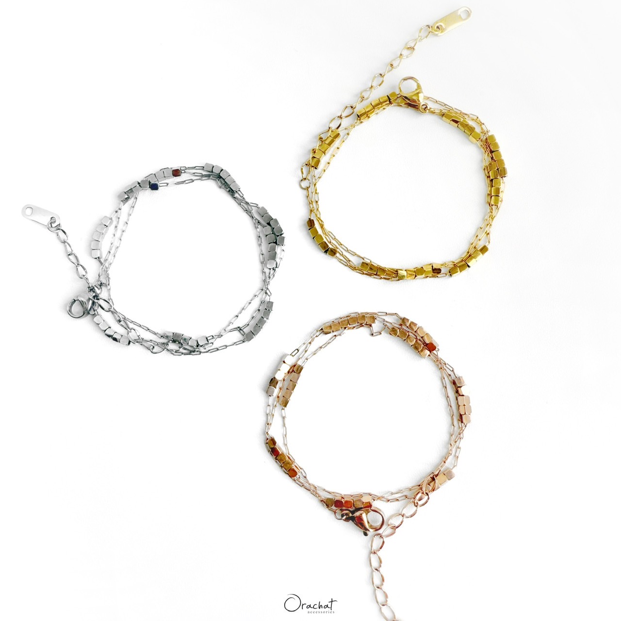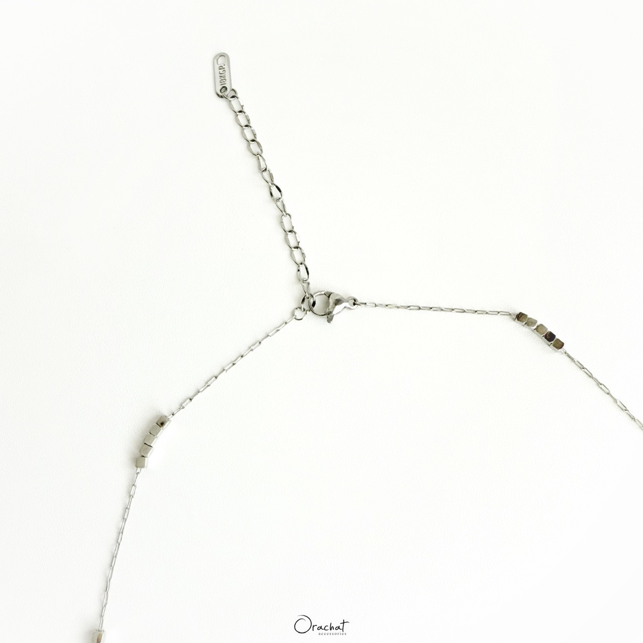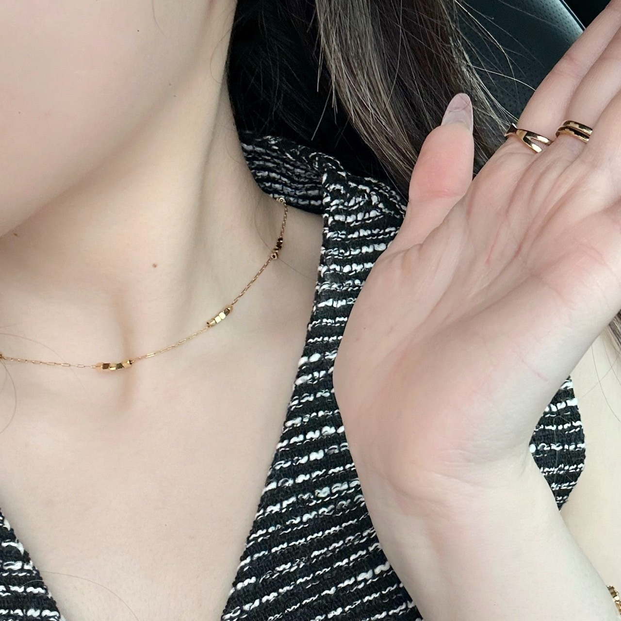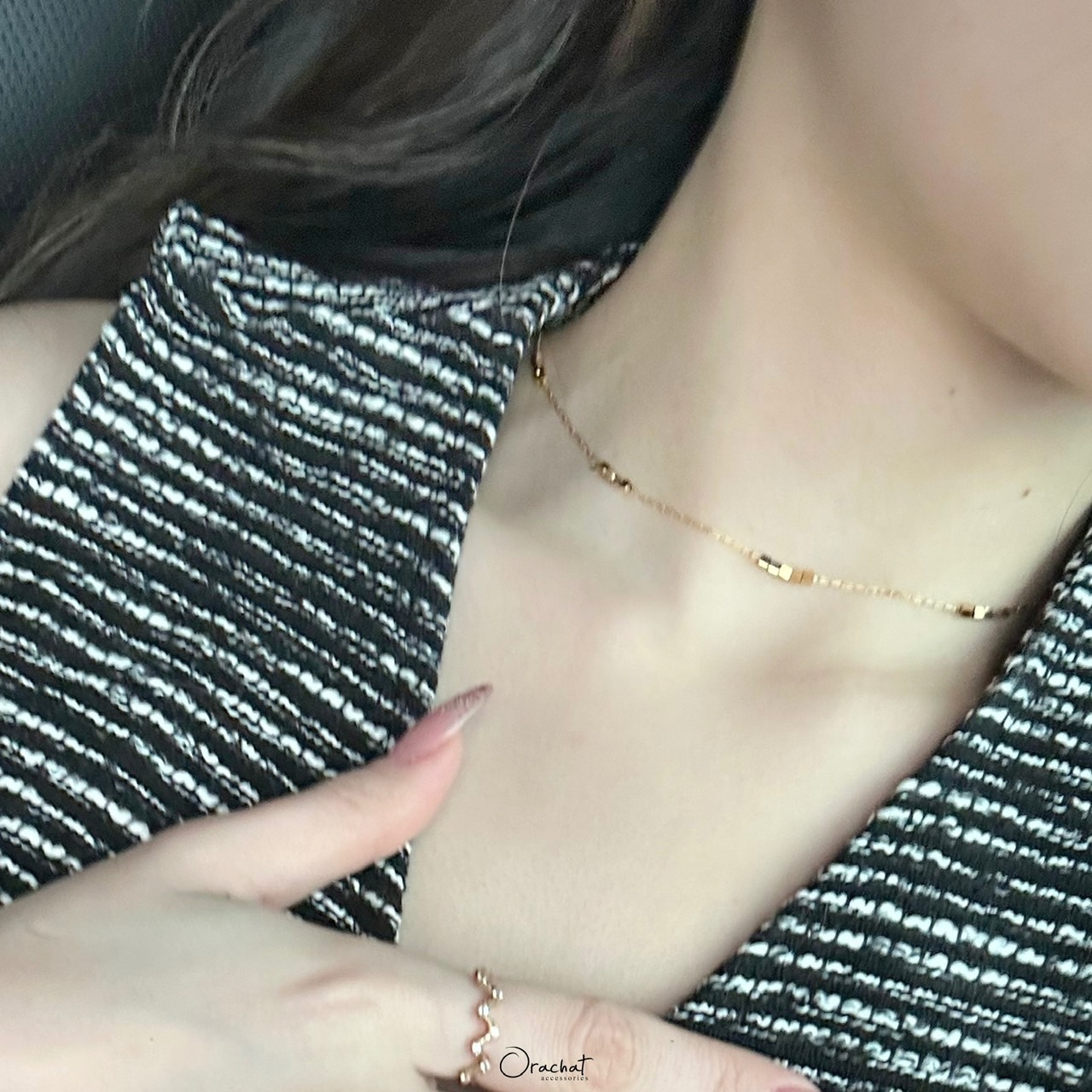 สายแฟต้องมีรุ่นนี้ เรียบๆ เก๋ๆ ใส่กับเสื้อทรงไหนก็สวย เผื่อหลายๆคนไม่รู้ว่าสร้อยคอแบบสั้นเป็นอีกหนึ่งไอเท็มงานคอที่ควรมีติดไว้เลยนะคะ ใส่กับเสื้อคอกลม คอวี คอลึก เสื้อเชิ้ต คือรอดหมด รุ่นนี้ไม่มีจี้แต่จะเป็นลายสี่เหลี่ยมแต่งเป็นระยะๆ เพิ่มความเล่นแสง เอาจริงแค่ใส่กับเสื้อเชิ้ตขาวเรียบๆยังสวยเลย