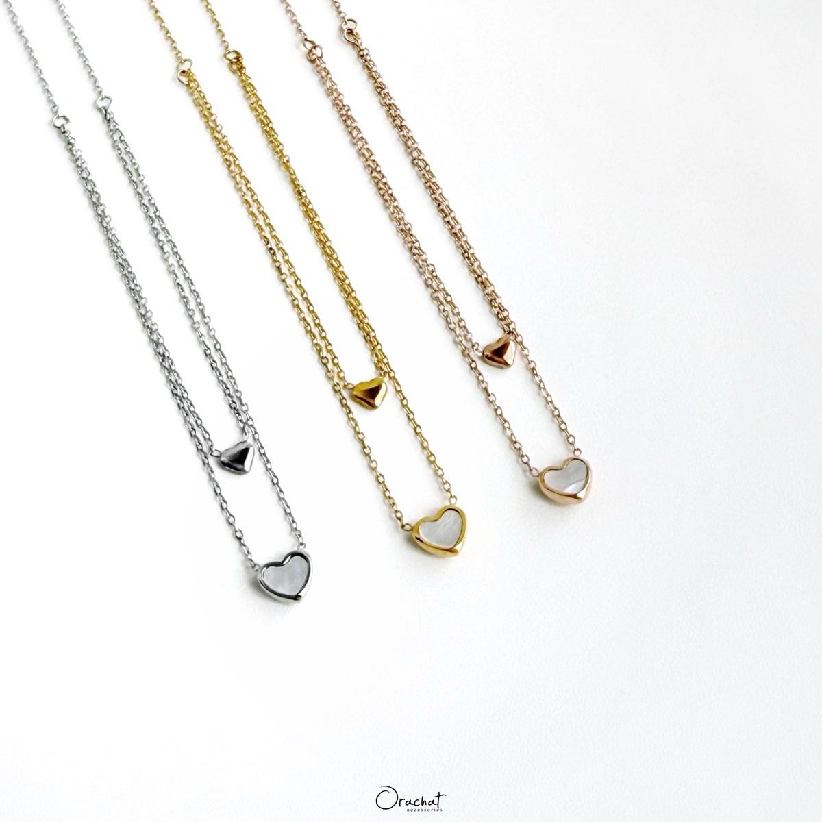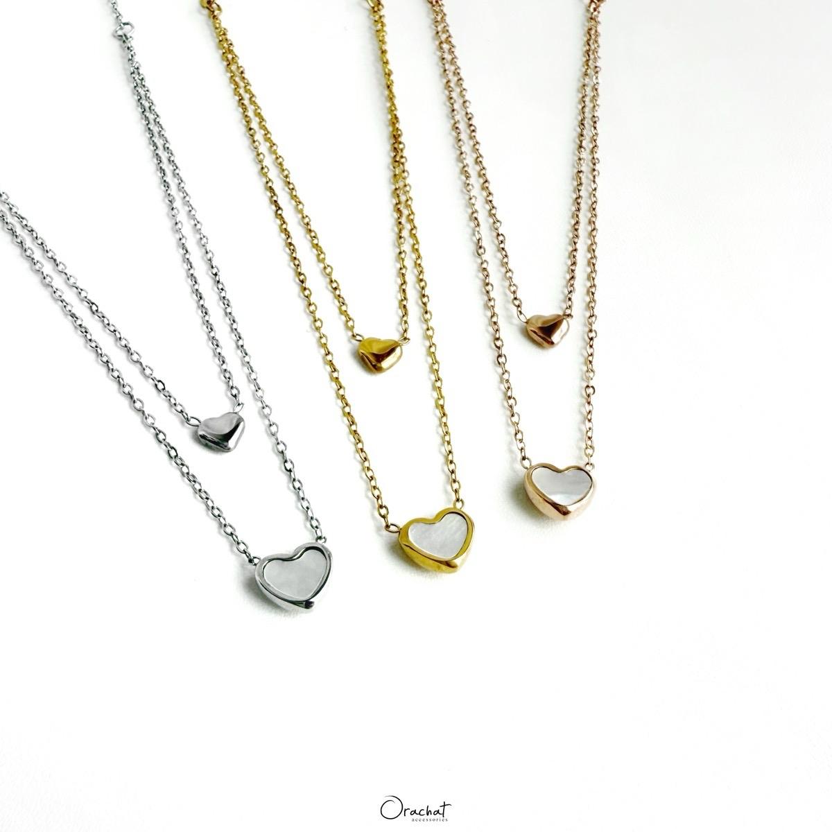 กลับมาแล้ววค่าสร้อยคอ 2 ชั้นที่ลูกค้าถามกันมาตลอดๆว่ามีมาอีกไหม มาเลยจ้ารุ่นนี้น่ารักเวอร์ๆ เป็นจี้หัวใจ อันล่างแต่งด้วยเปลือกหอยมุกให้ลุคหวานๆชิคๆ และแอบบอกว่าถ้าวันไม่อยากหวานให้เอาด้านมุกหันเข้าหัวโชว์หัวใจเกลี้ยงๆให้ลุคสายแฟสุดๆ
