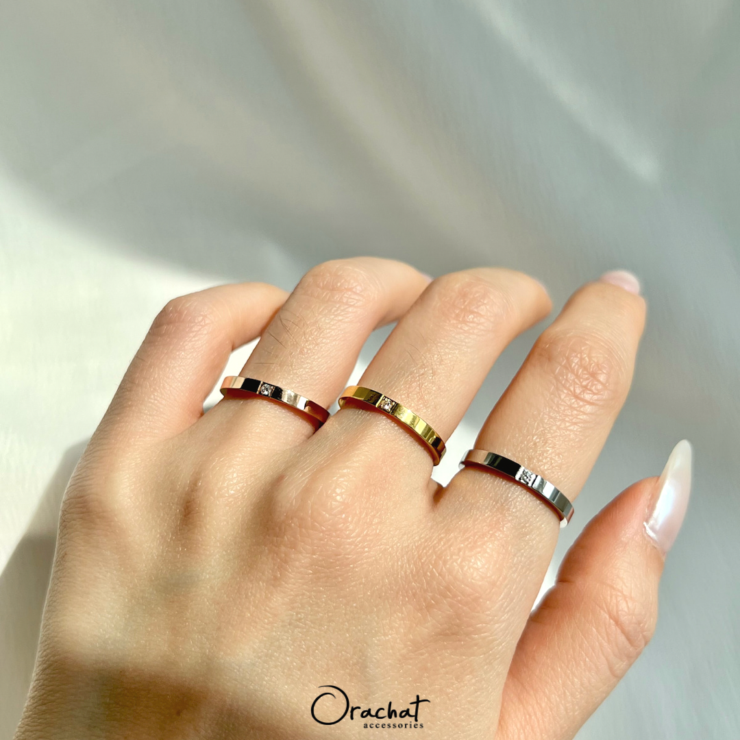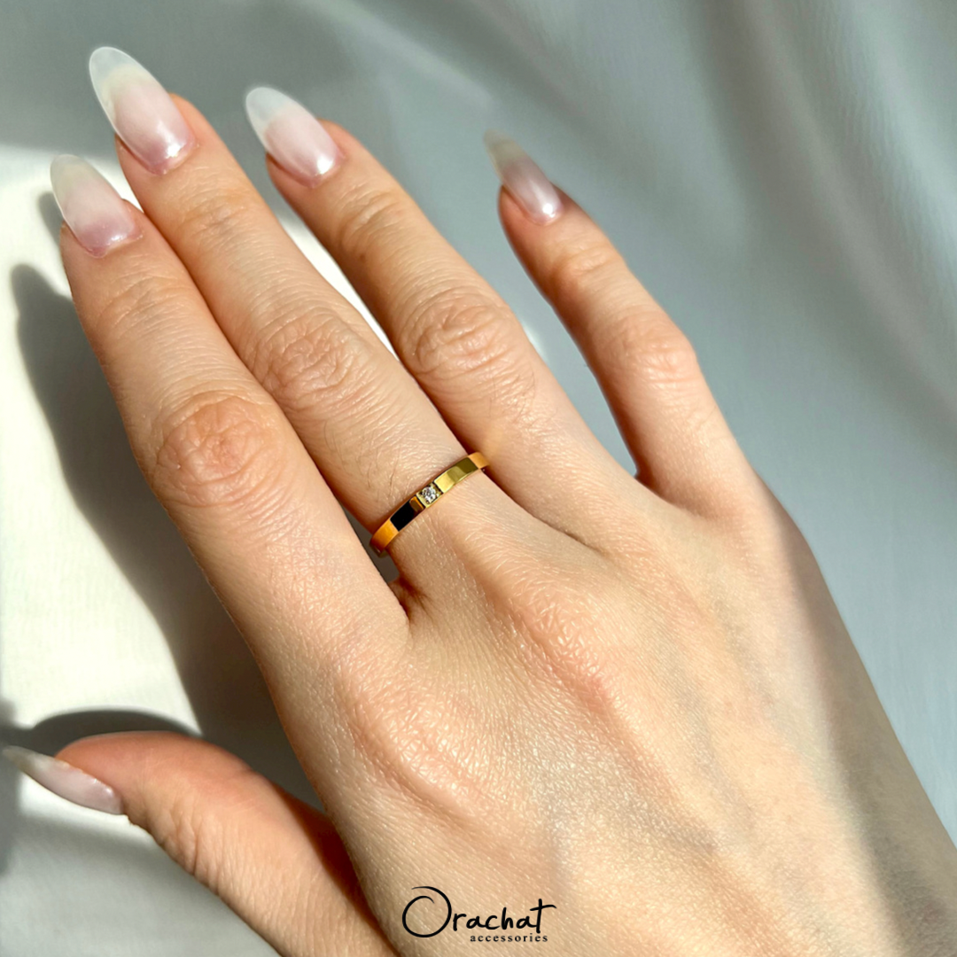 แหวนเกลี้ยงทรงเหลี่ยม ฝังด้วยเพชร CZ เม็ดเดี่ยว สวยแพง เรียบหรู เกินราคา ใส่ได้ทั้งผู้หญิงและผู้ชายเลยนะคะรุ่นนี้