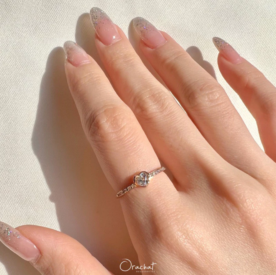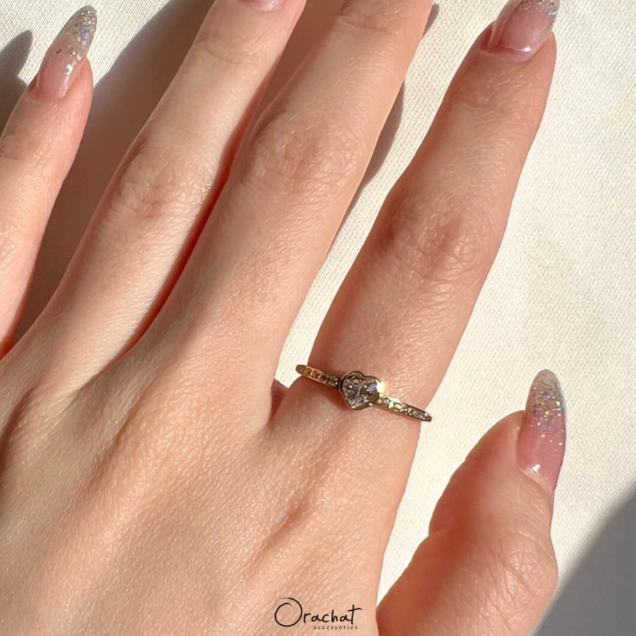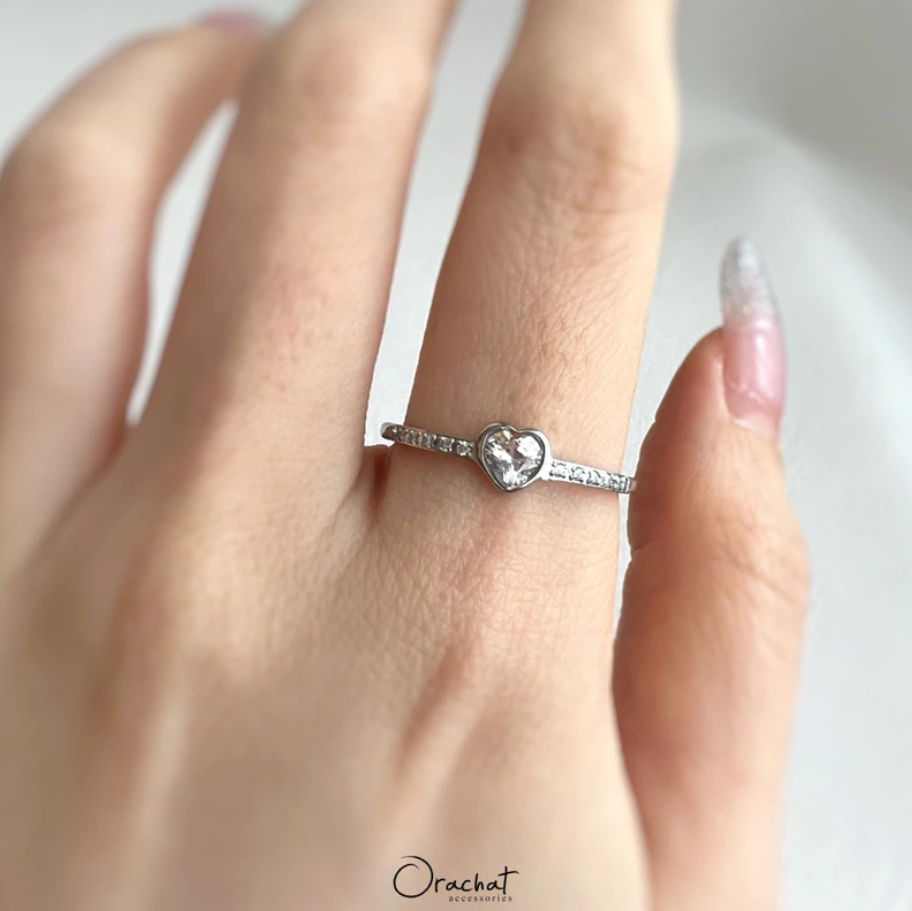 คิ้วท์สุดๆกับแหวนเพชรทรงหัวใจ ตัวเรือนมีลูกเล่นเป็นลายคลื่นด้านหลัง ละมุนมากกกค่ะ สาวหวานหรือต้องการใส่เสริมเรื่องความรักแนะนำรุ่นนี้เลยค่ะ
