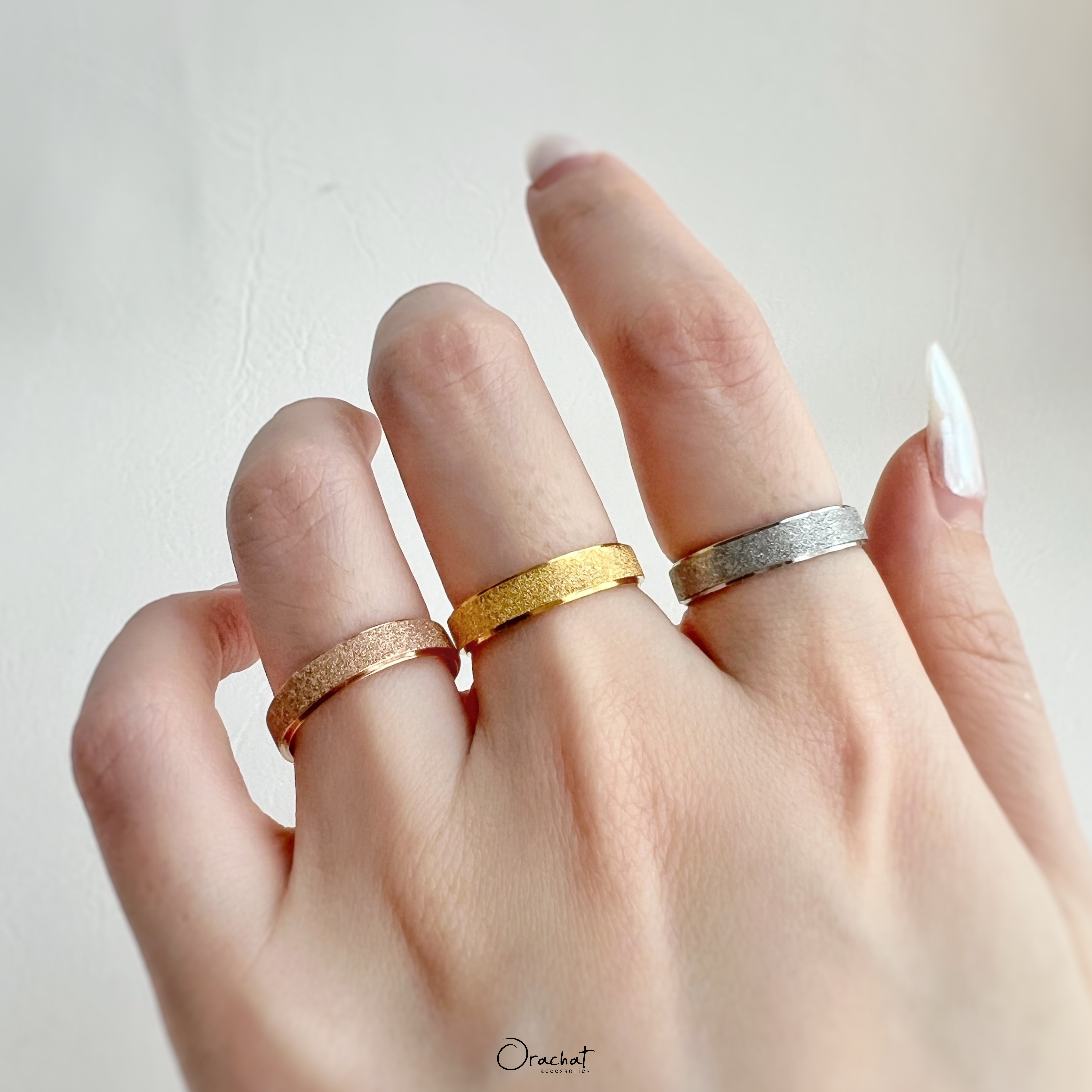 เรียบง่ายและดูดีต้องแหวนลายพ่นทรายขอบเงา รุ่นนี้ใส่ได้ทั้งผู้หญิงและผู้ชายเลยนะคะ