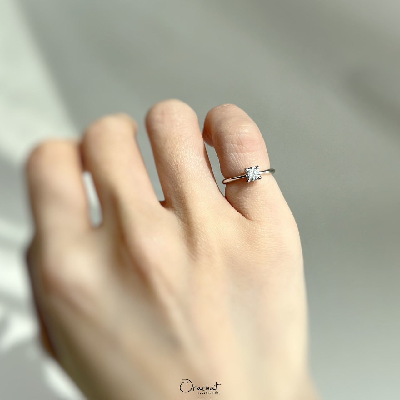 แหวนเกลี้ยงตัวเรือนเงินแท้ หัวเพชรชูขนาดกำลังดี น่ารักมากกกก ใส่สวยทุกนิ้ว ใส่ได้ทุกวัน ใครว่ารุ่น Betty ใส่แล้วเขินมาเก็บรุ่นนี้นะคะ ขนาดตะมุตะมิ