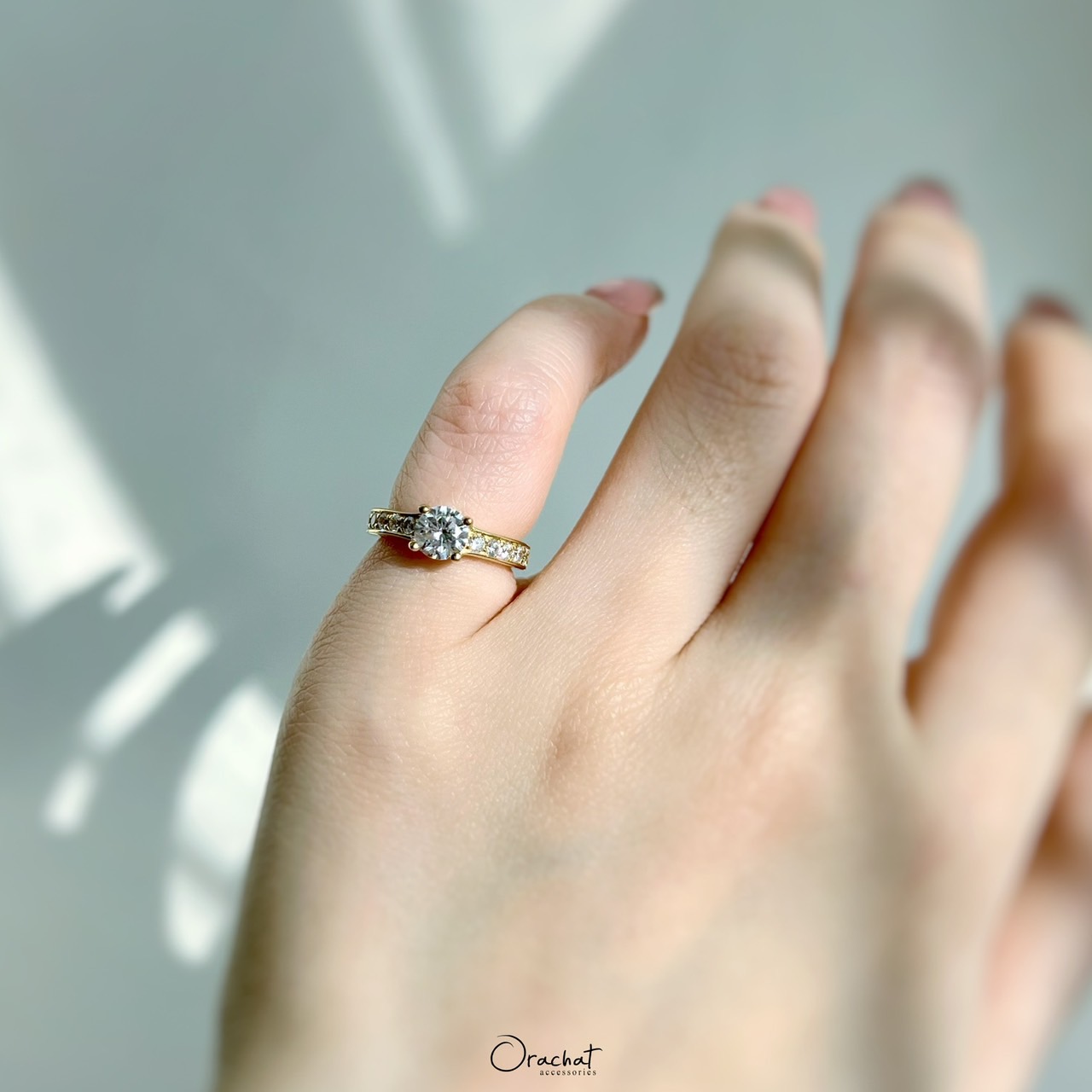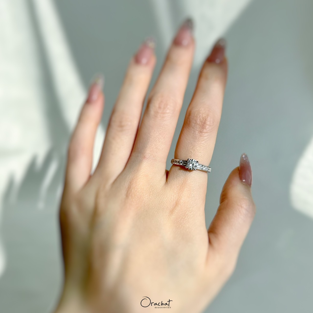 ฟังแค่ชื่อก็สวยแล้วค่ะ แหวนเงินแท้ทรงคลาสสิค รุ่นนี้จะหน้าตาคล้ายๆ Linda แต่ใหญ่กว่า อารมณ์เป็นรุ่นพี่ หัวเพชรขนาด 5 มิล แต่งด้วยบ่าเพชร สวยสง่าเลอค่าสุดๆ