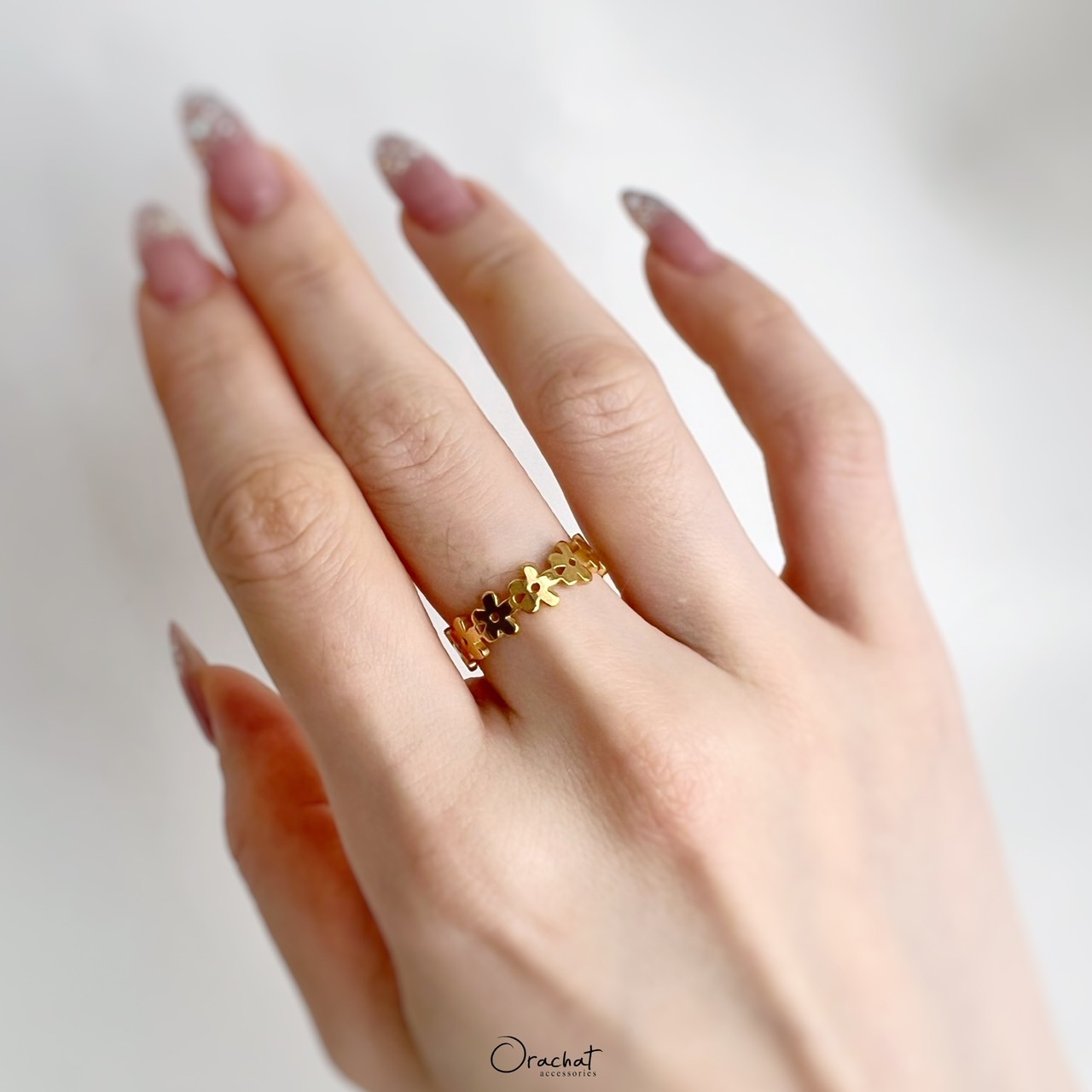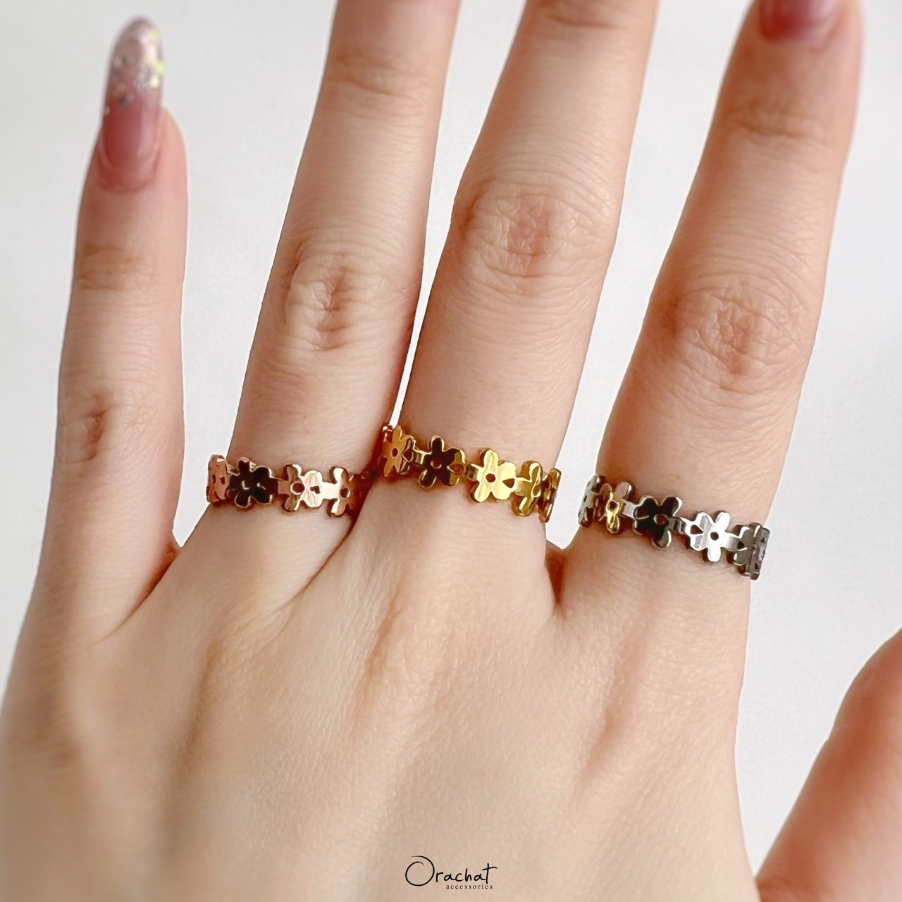 น่ารักสดใสต้อนรับซัมเมอร์ต้องแหวนลายดอกไม้รุ่นนี้เลยค่ะ ใส่วงเดียวก็ให้ลุคคิ้วท์ๆ หรือเอาแหวนเพชรมาใส่รองด้านล่างก่อนแล้วท้อปด้วยน้องบอสสัมก็คือดีย์ สายหวานไม่ควรพลาด