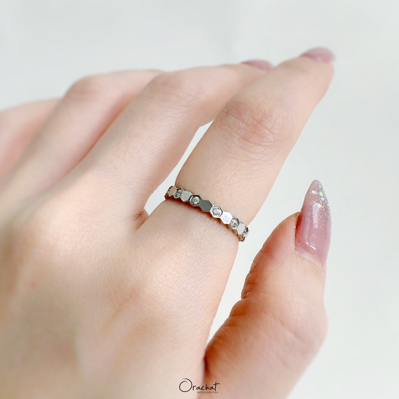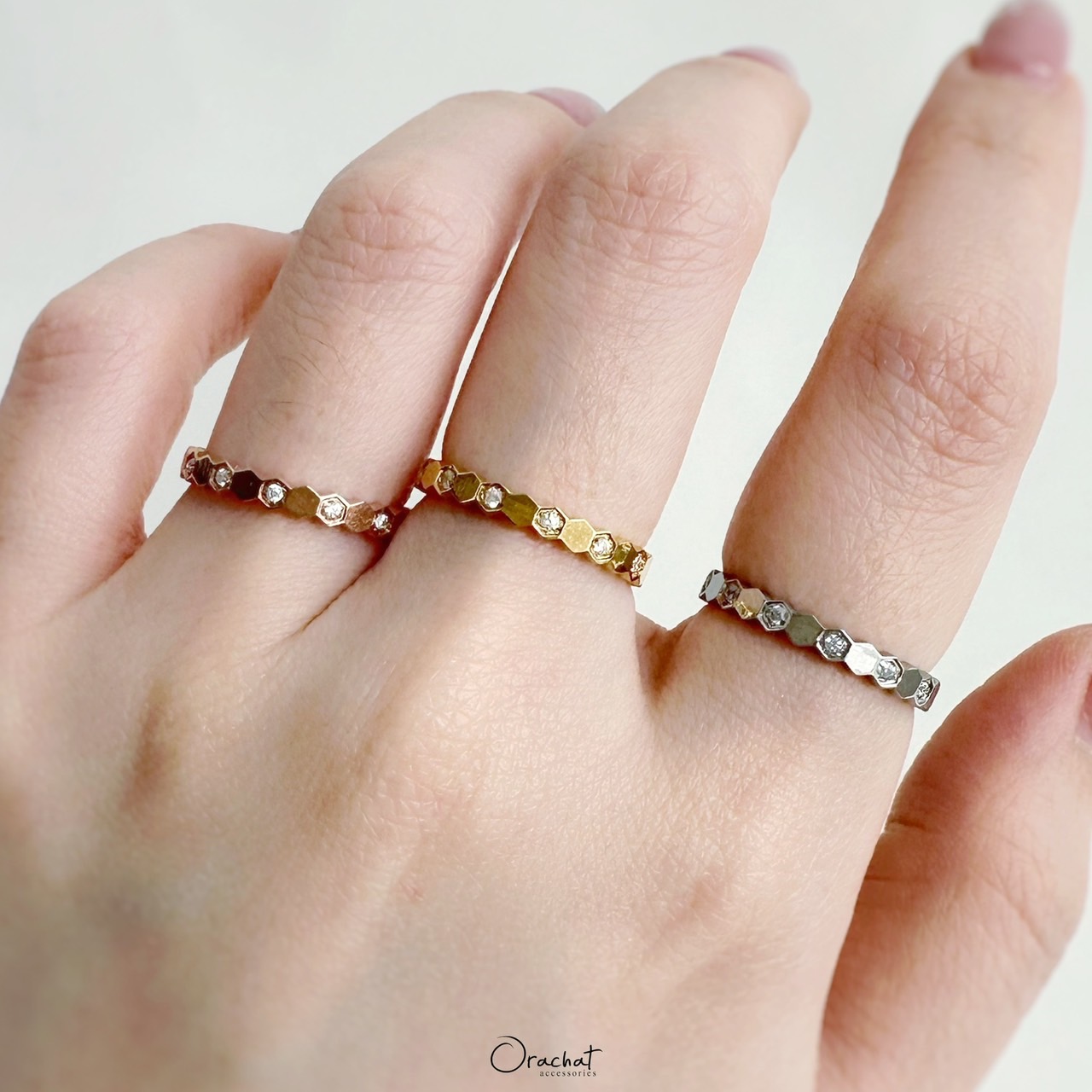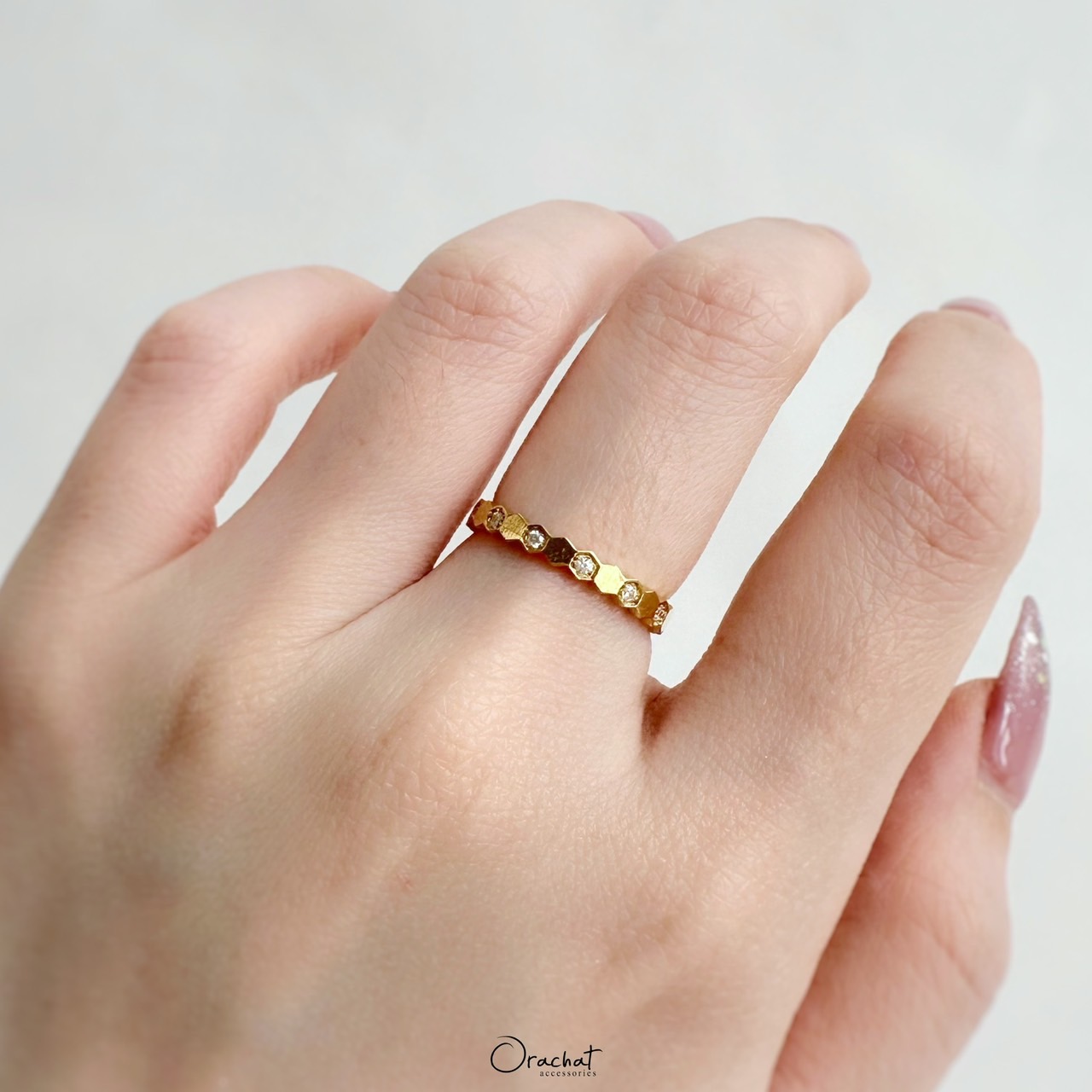 เกร๋ๆอะแกรรร ง่ายๆ น้อยๆ แต่ดูมีอะไรกับแหวนลายรังผึ้ง วงนี้ให้ลุคเบาๆในวันสบายๆแต่แฝงไปด้วยดีไซน์สุดเก๋ แอบกระซิบว่ารุ่นนี้ใส่รองแล้วท้อปด้วยแหวนตัวเพชรคือดีมากกกก