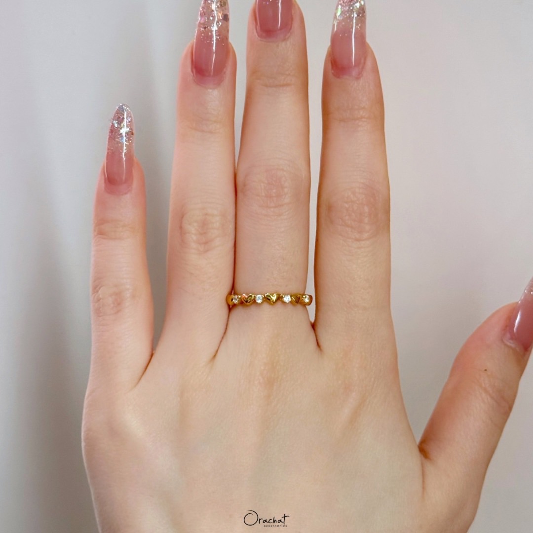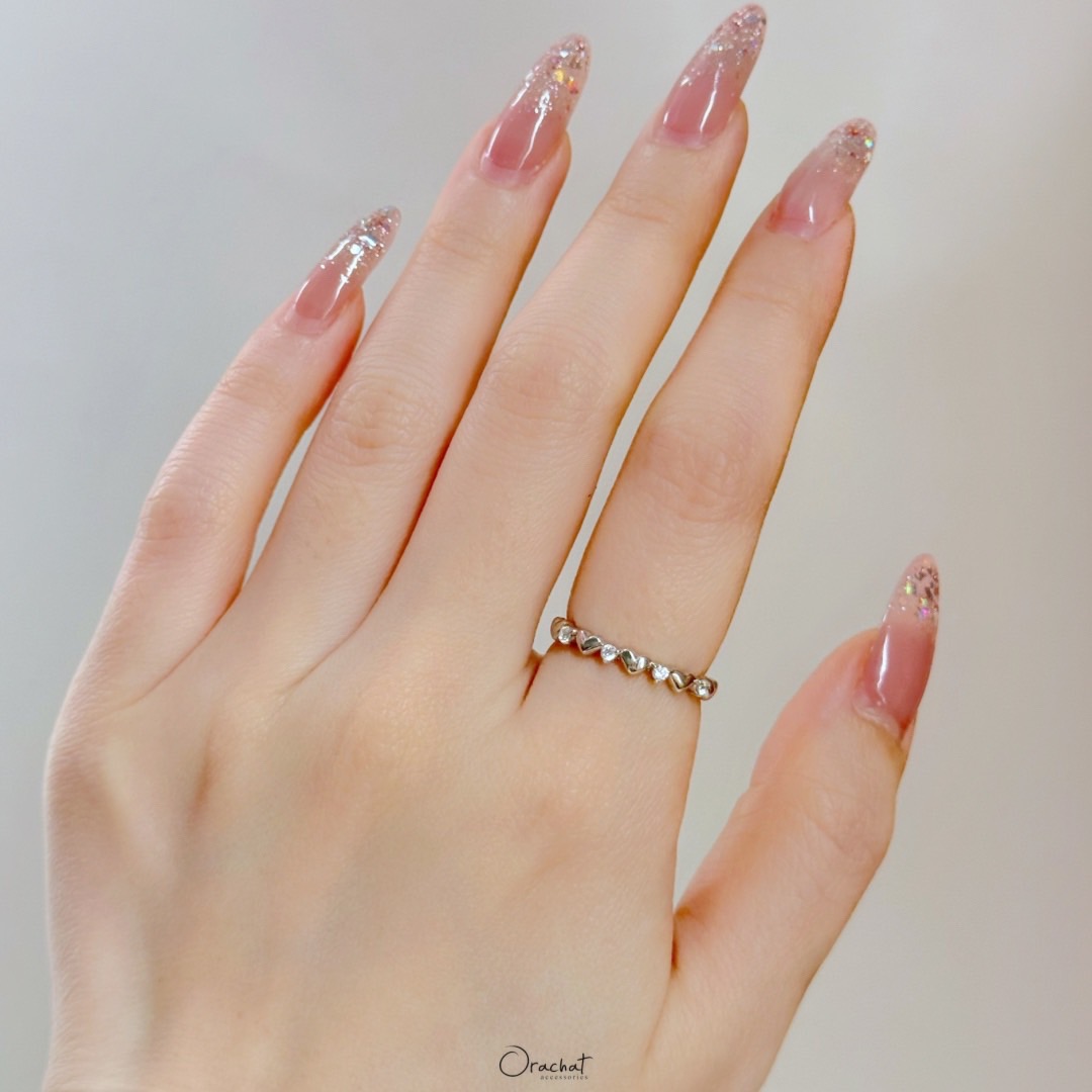 น่ารักกกกสุดๆ ดูดีเทล ดูความปราณีต ดูความพิถีพิถัน แหวนหัวใจจิ๋วเรียง รุ่นนี้ถึงแม้ว่าความสูงจะไม่มากแต่ด้วยดีไซน์ที่มีมิติ สาวนิ้วอวบคือใส่ไม่จมแน่นอน ถ้านิ้วอวบใส่สวย การันตีเลยว่านิ้วทรงอื่นๆก็คือใส่สวยแน่นอน และใส่สวยในทุกนิ้วด้วยค่ะ
