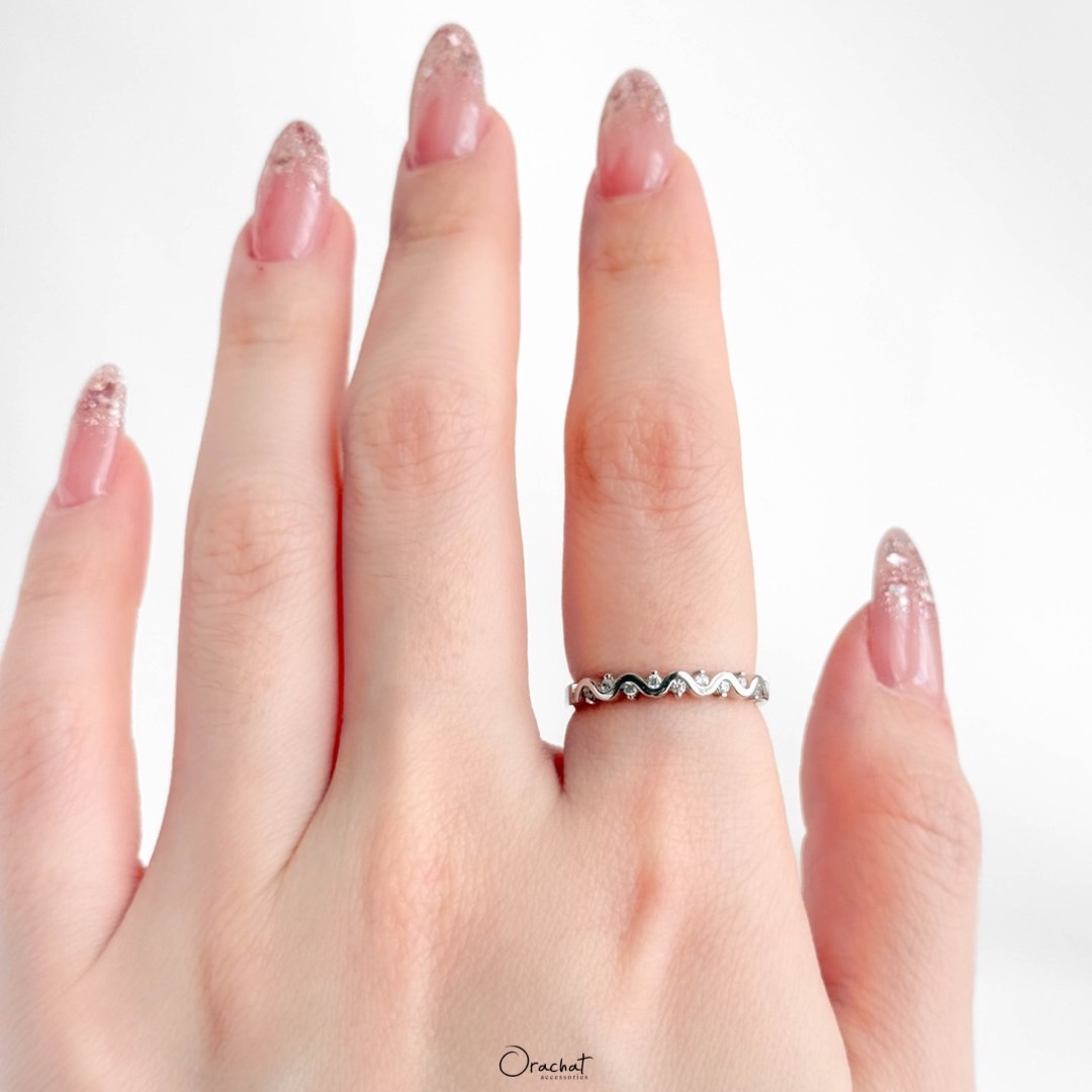 รุ่นนี้ถ้าใส่วงเดียวจะได้ลุคเบาๆน้อยๆ ไม่หวือหวาแต่ไม่จืดมากและค่อนไปทางหวาน แต่จะบอกว่ารุ่นนี้เอามาใส่ Stack คือแซ่บมาก และใส่สวยทุกนิ้ว ชี้ กลาง นาง ก้อย ได้ลองแล้วจะหลงรัก